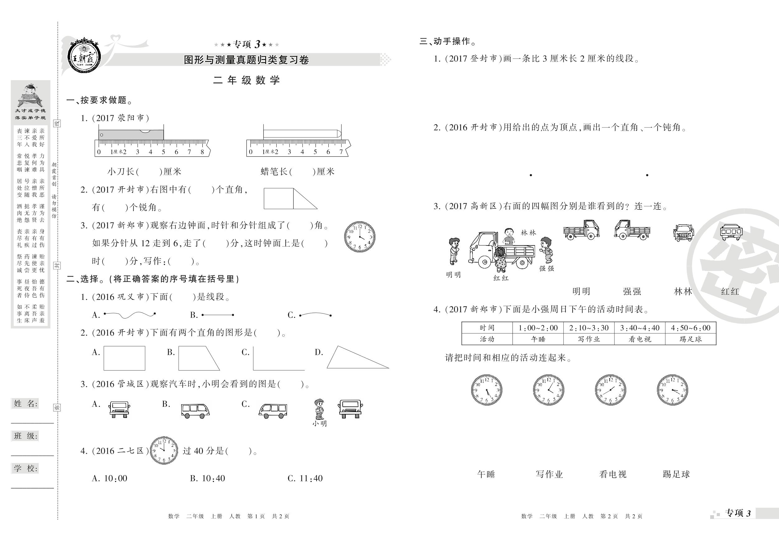 王朝霞期末专项卷——图形与测量、解决问题真题归类复习卷二年级上册数学(人教版)_R210803103744【0】