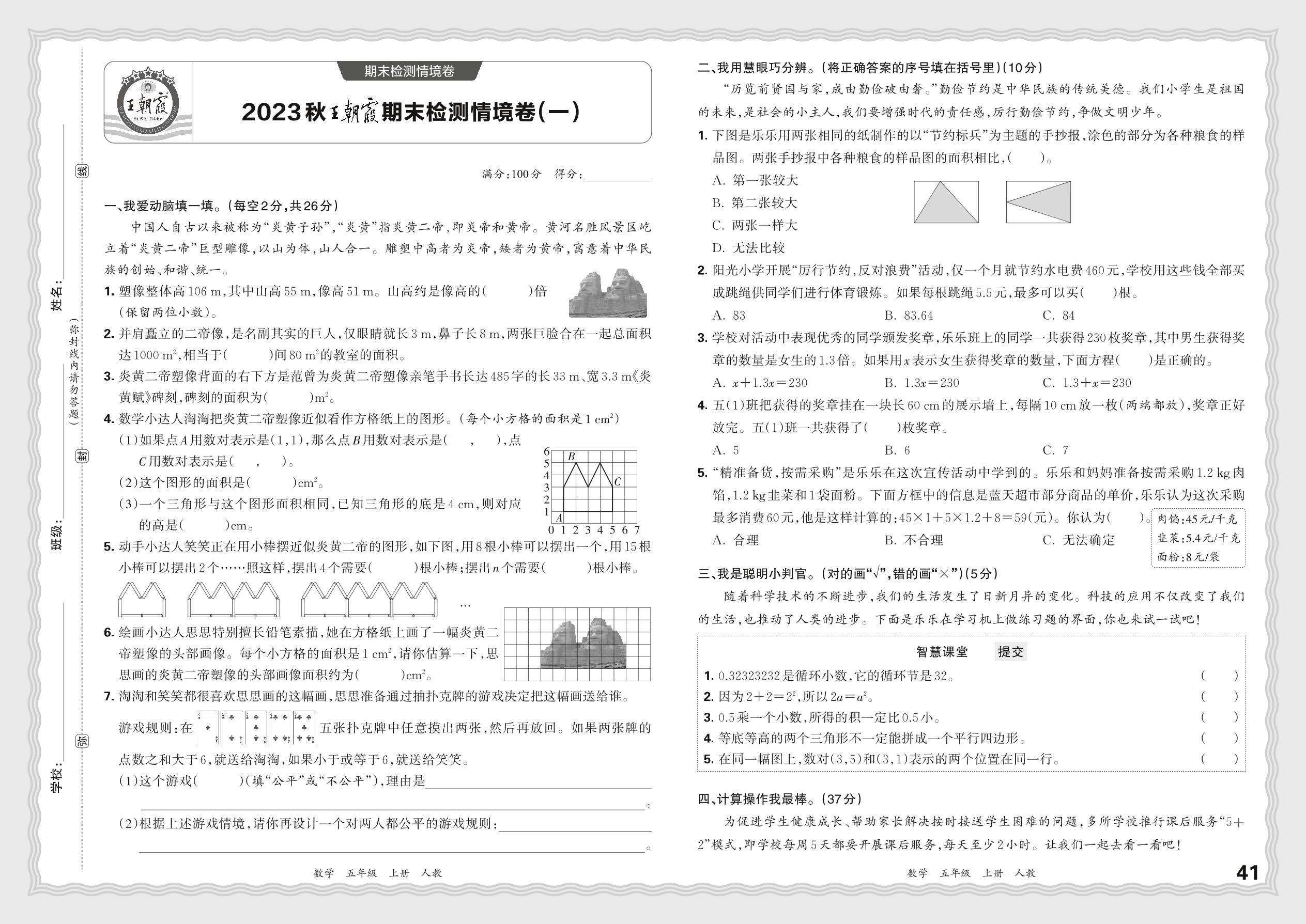 2023秋上册五年级数学人教版 王朝霞期末检测情境卷(一)