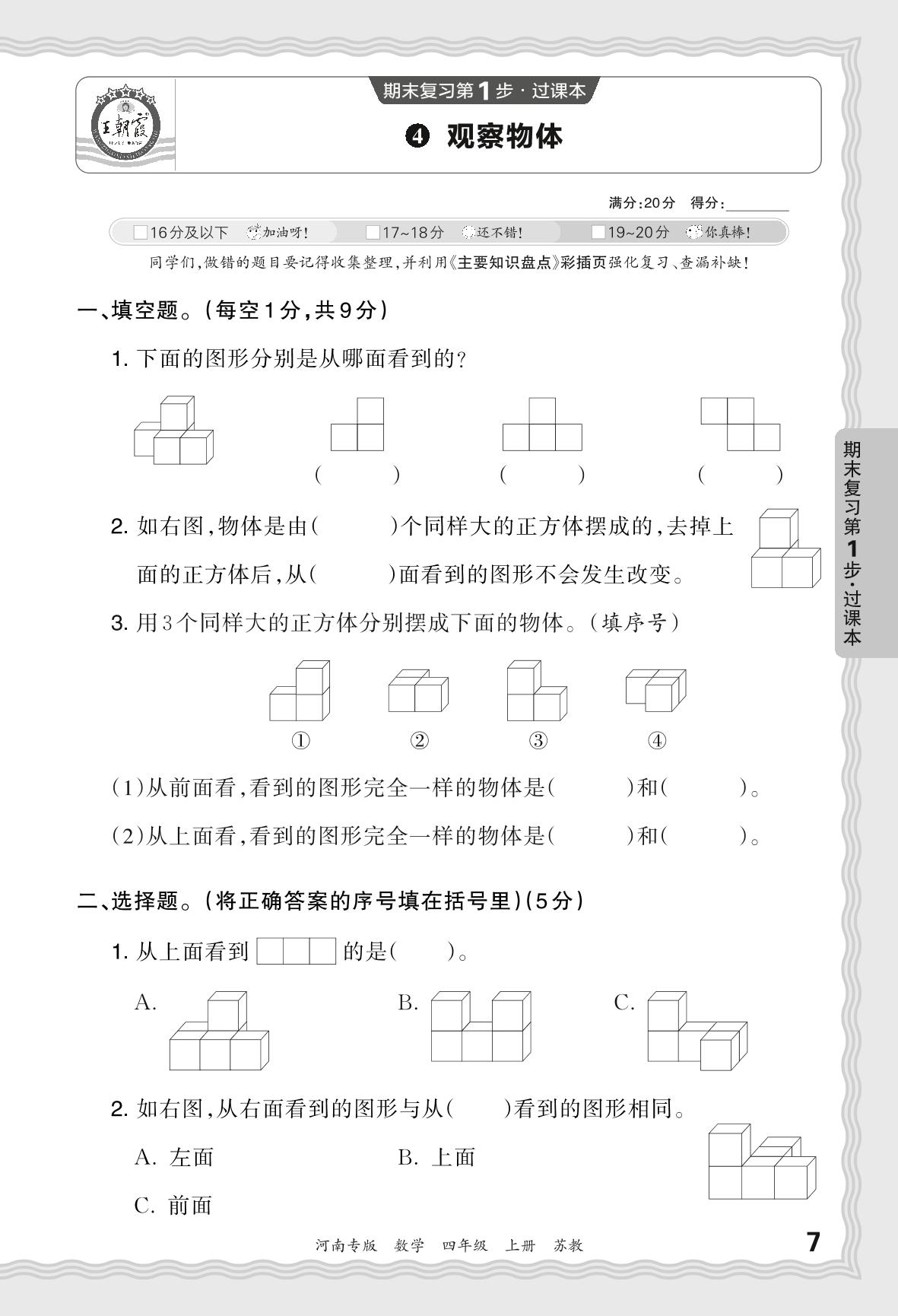 2023秋上册四年级数学苏教版 期末过课本QMA版·观察物体【4】