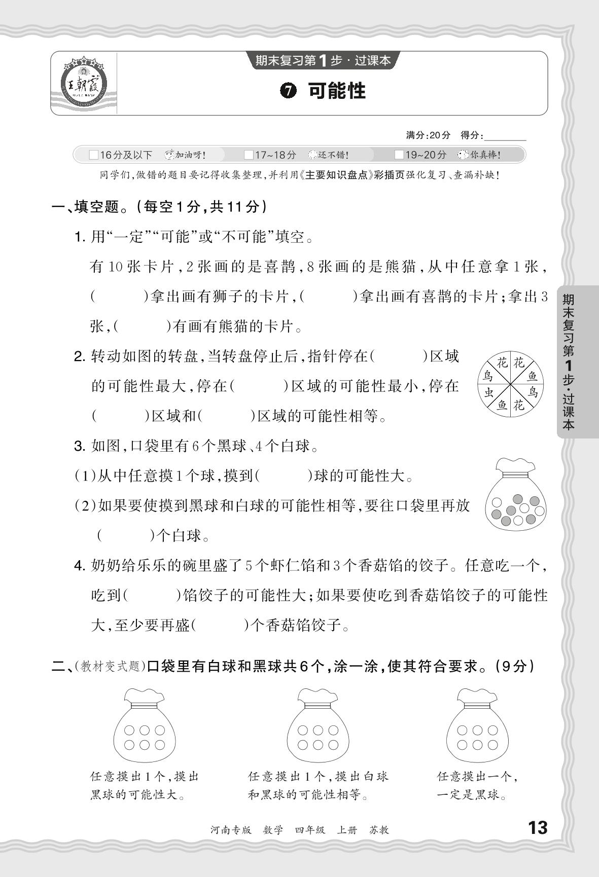 2023秋上册四年级数学苏教版 期末过课本QMA版·可能性【7】