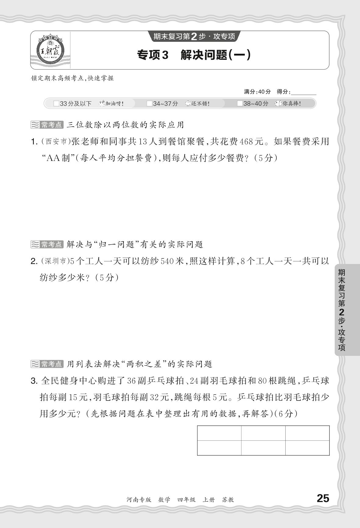 2023秋上册四年级数学苏教版 期末专项卷·解决问题(一)【3】