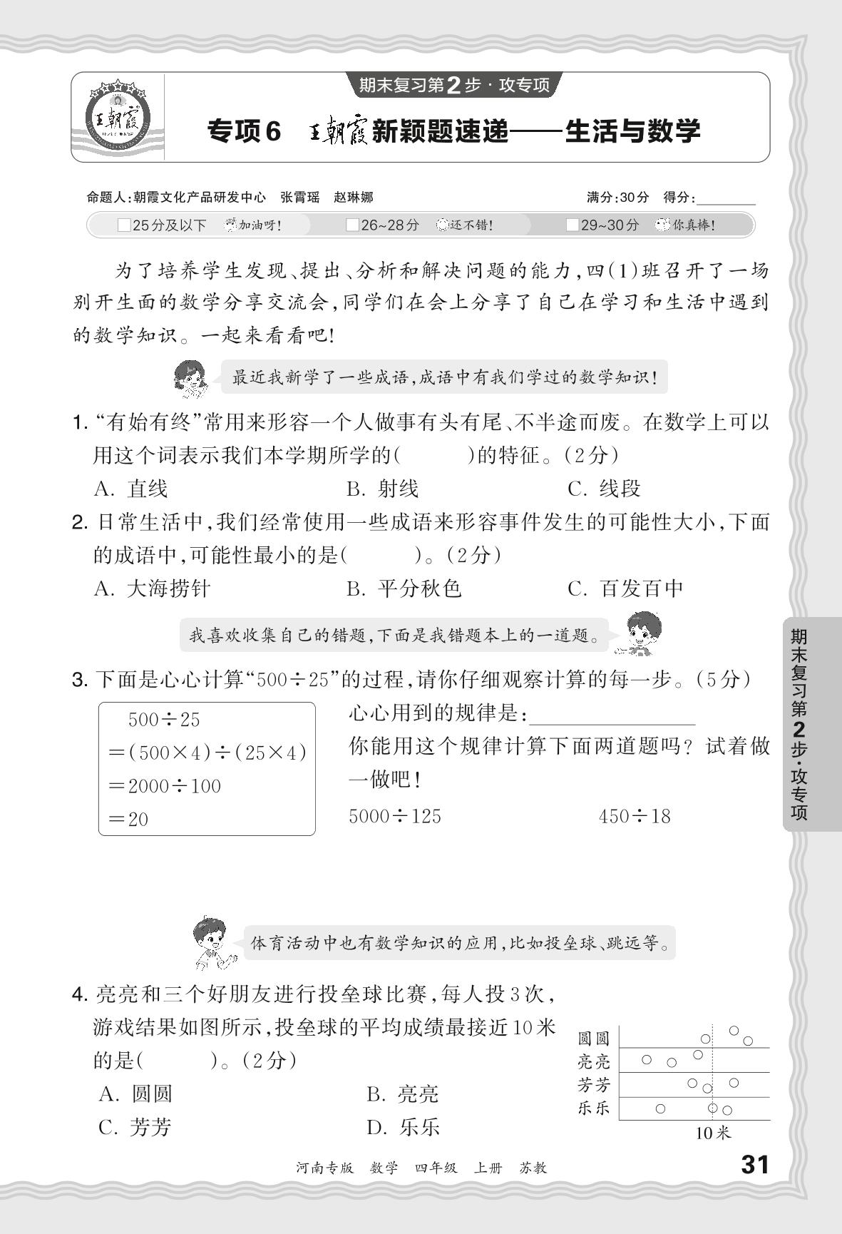 2023秋上册四年级数学苏教版 期末专项卷·王朝霞新颖题速递——生活与数学【6】