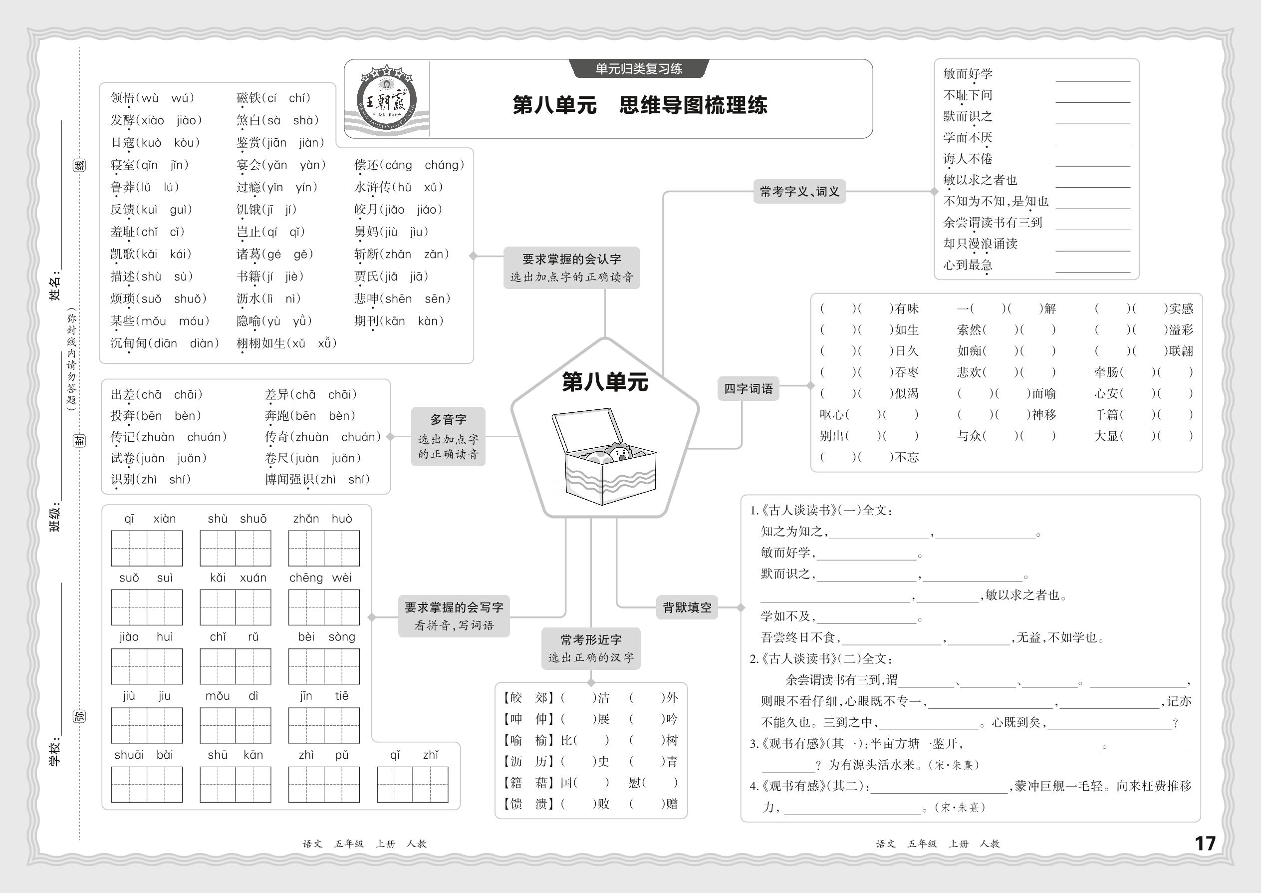 2023秋上册五年级语文人教版 期末过课本·单元归类复习练——第八单元
