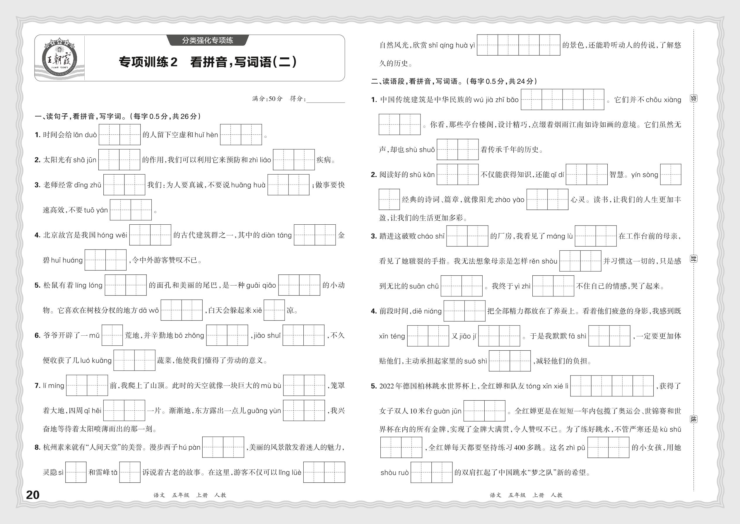 2023秋上册五年级语文人教版 期末专项·看拼音,写词语(二)【2】