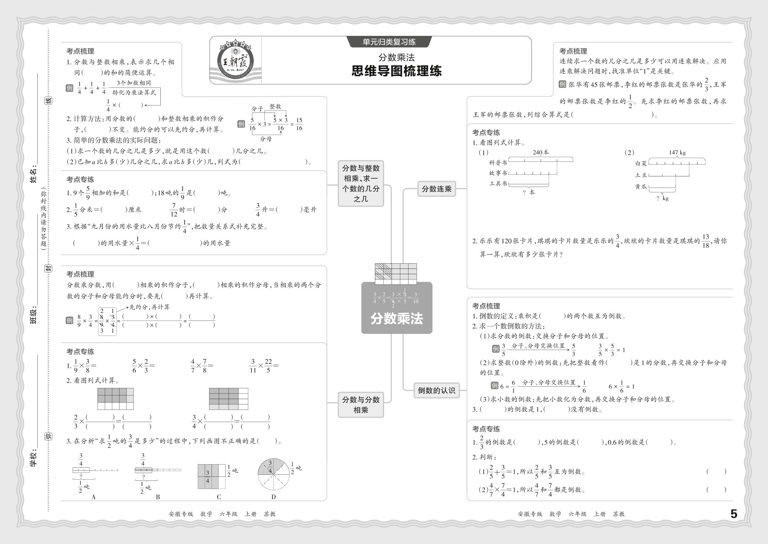 2023秋上册六年级数学苏教版 期末过课本·单元归类复习练——分数乘法【2】