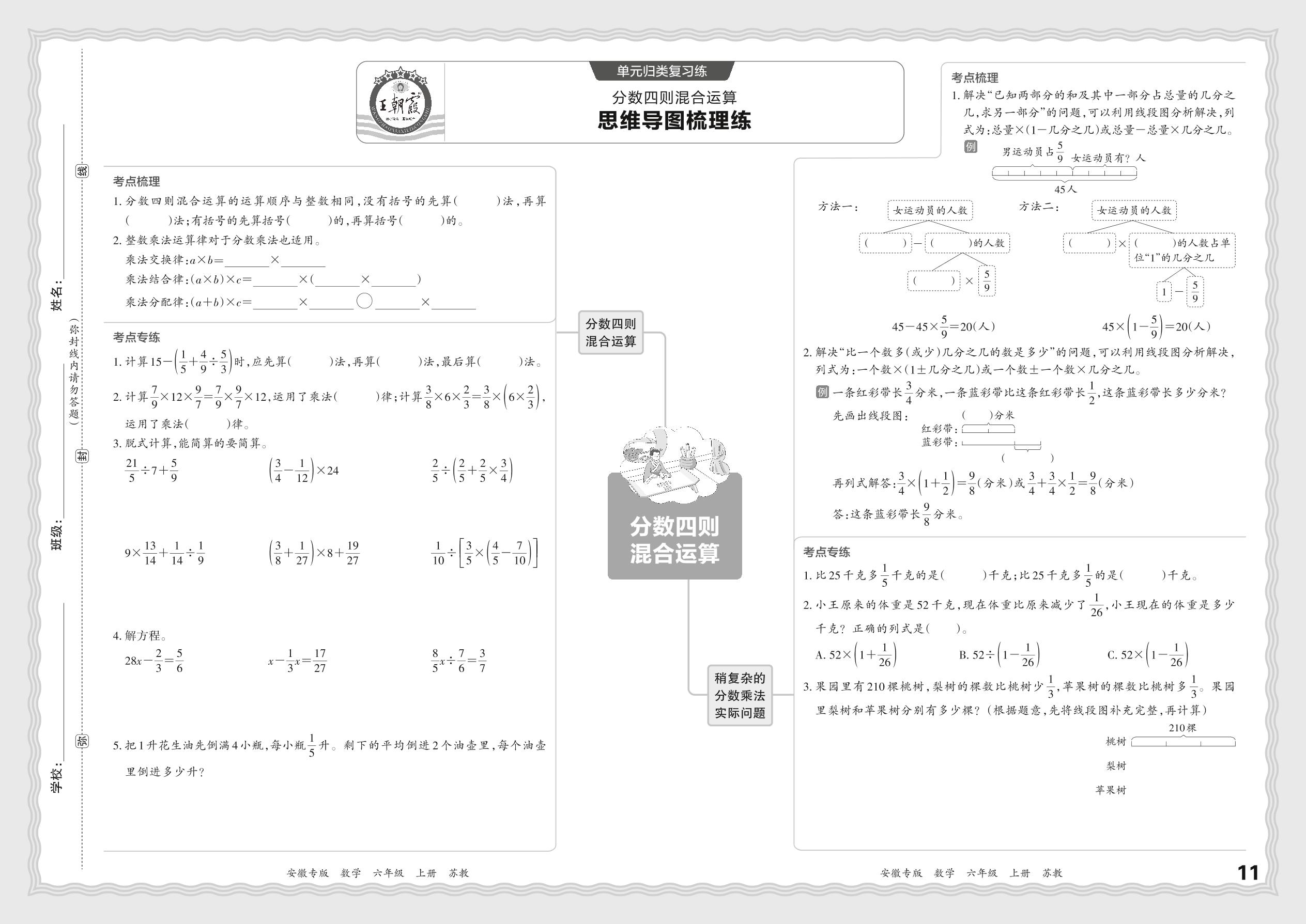2023秋上册六年级数学苏教版 期末过课本·单元归类复习练——分数四则混合运算【5】