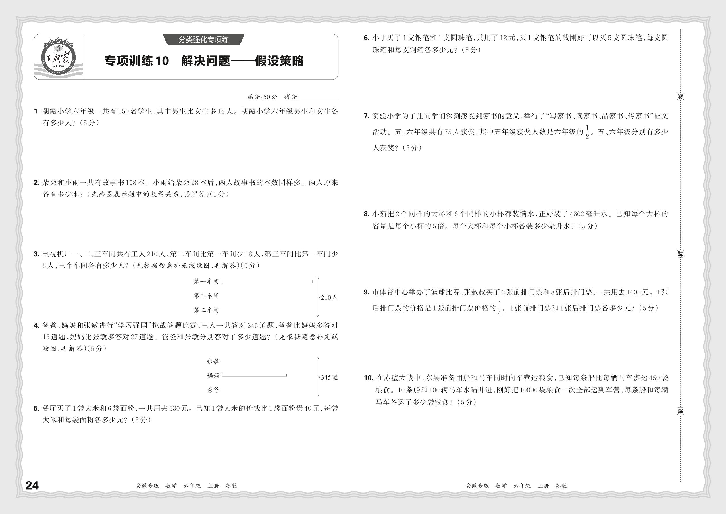 2023秋上册六年级数学苏教版 期末专项·解决问题——假设策略【10】