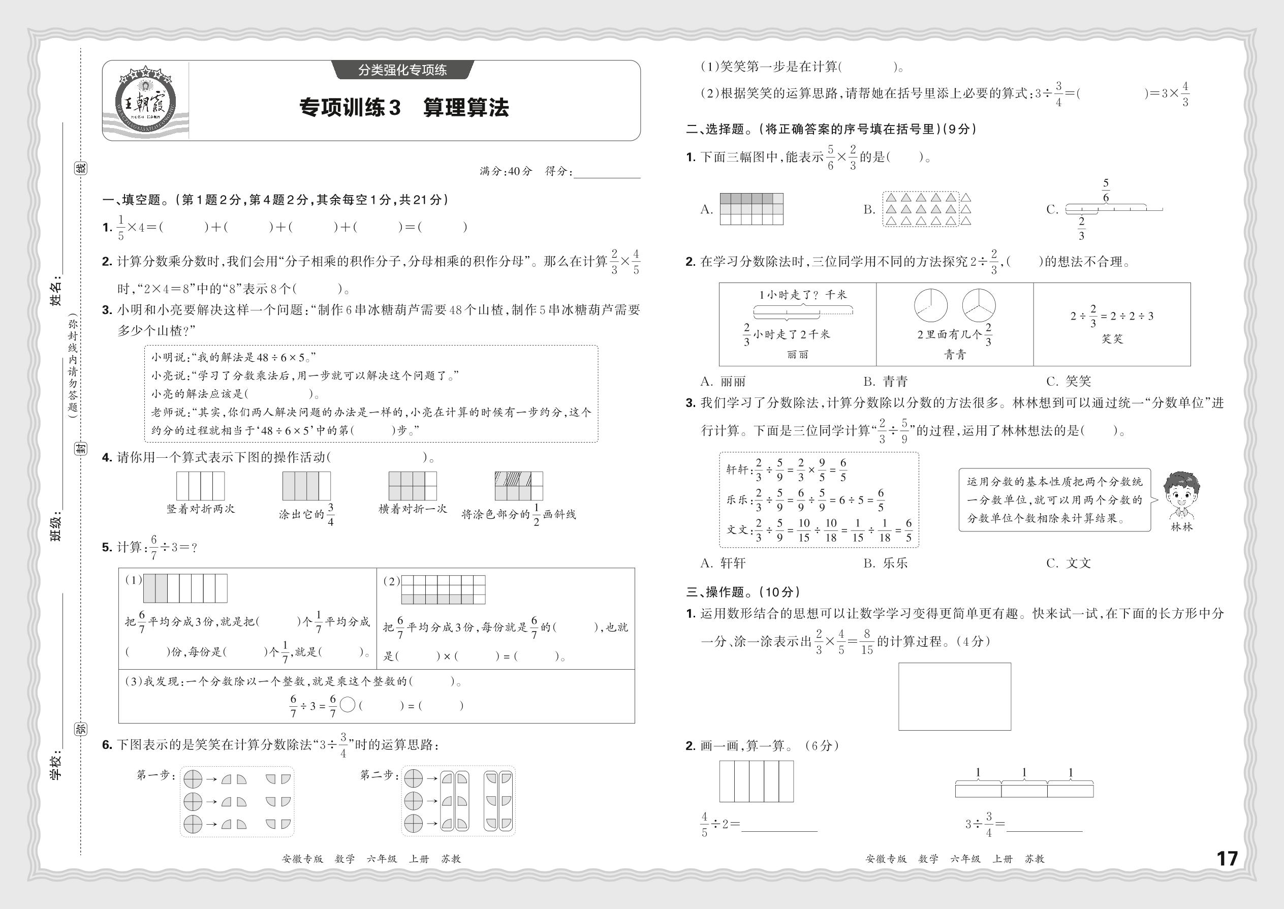 2023秋上册六年级数学苏教版 期末专项·算理算法【3】