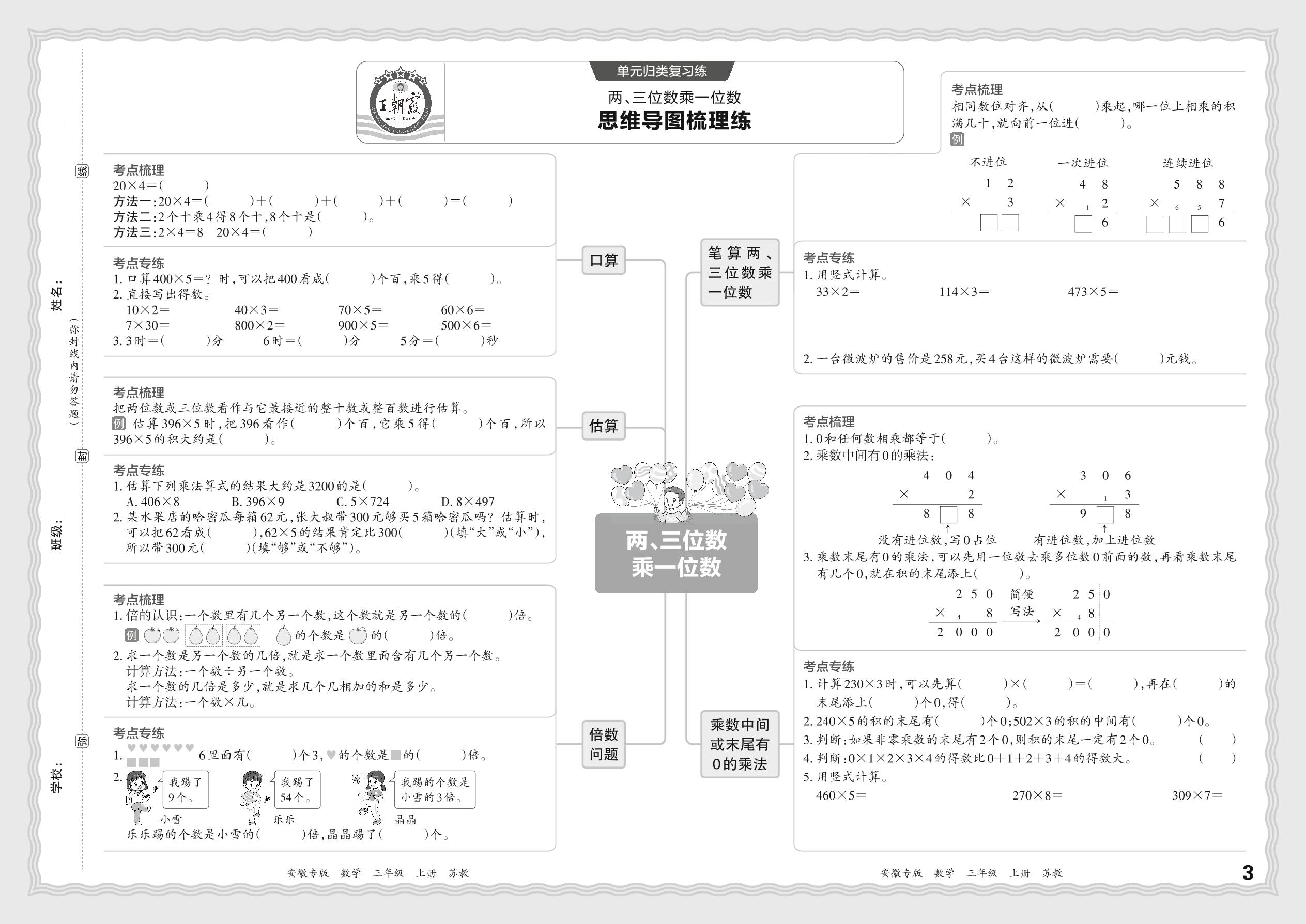 2023秋上册三年级数学苏教版 期末过课本·单元归类复习练——两、三位数乘一位数【1】