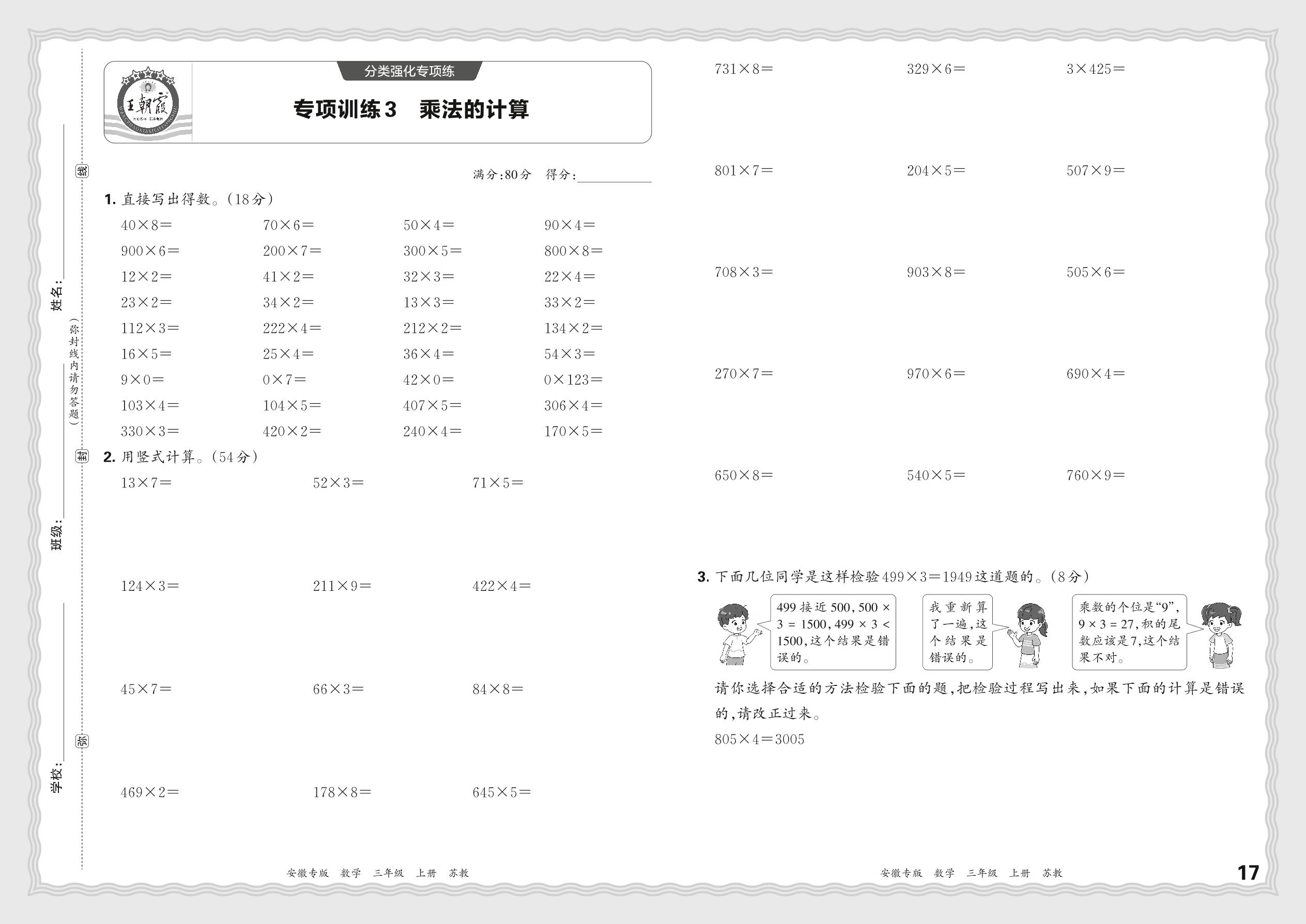 2023秋上册三年级数学苏教版 期末专项·乘法的计算【3】