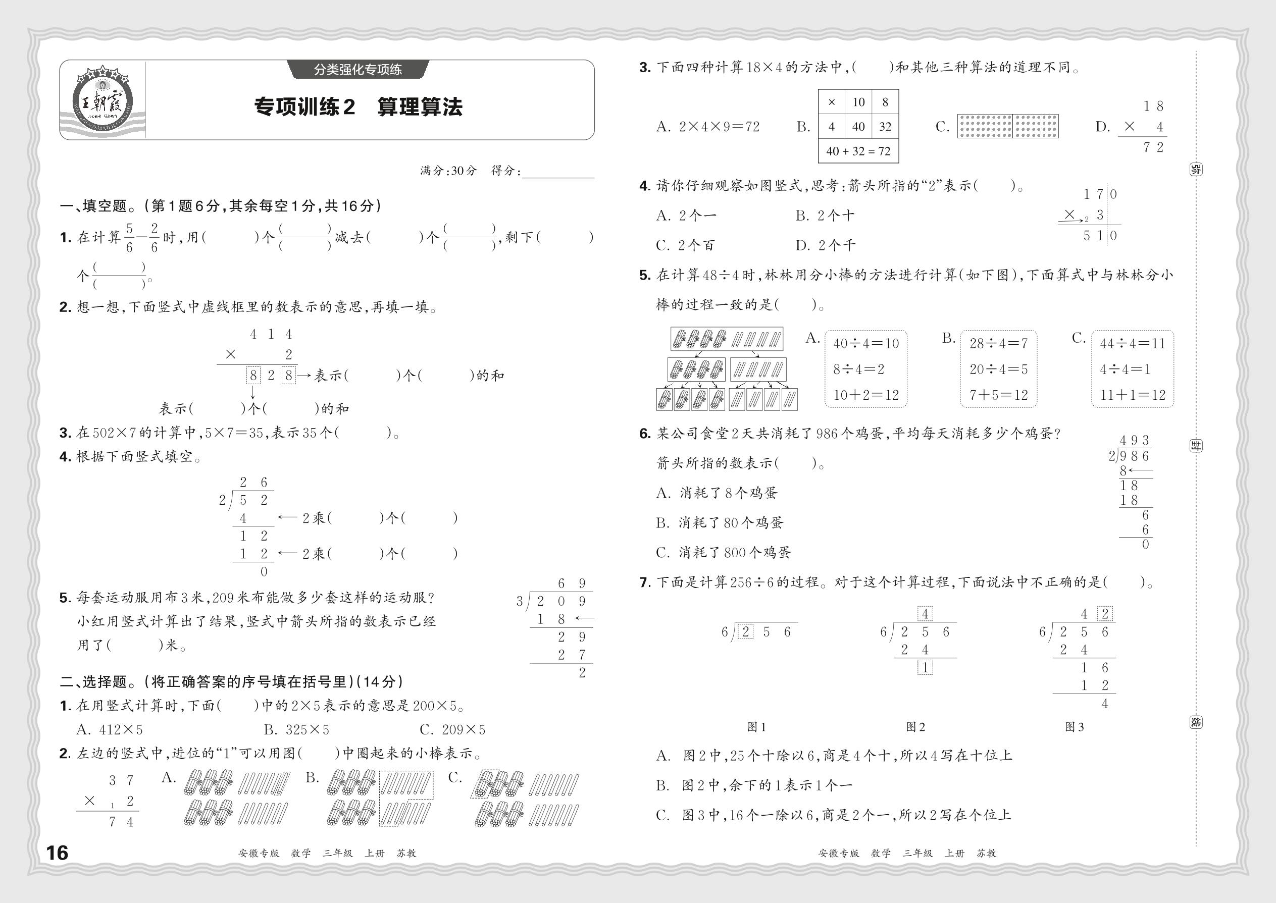 2023秋上册三年级数学苏教版 期末专项·算理算法【2】