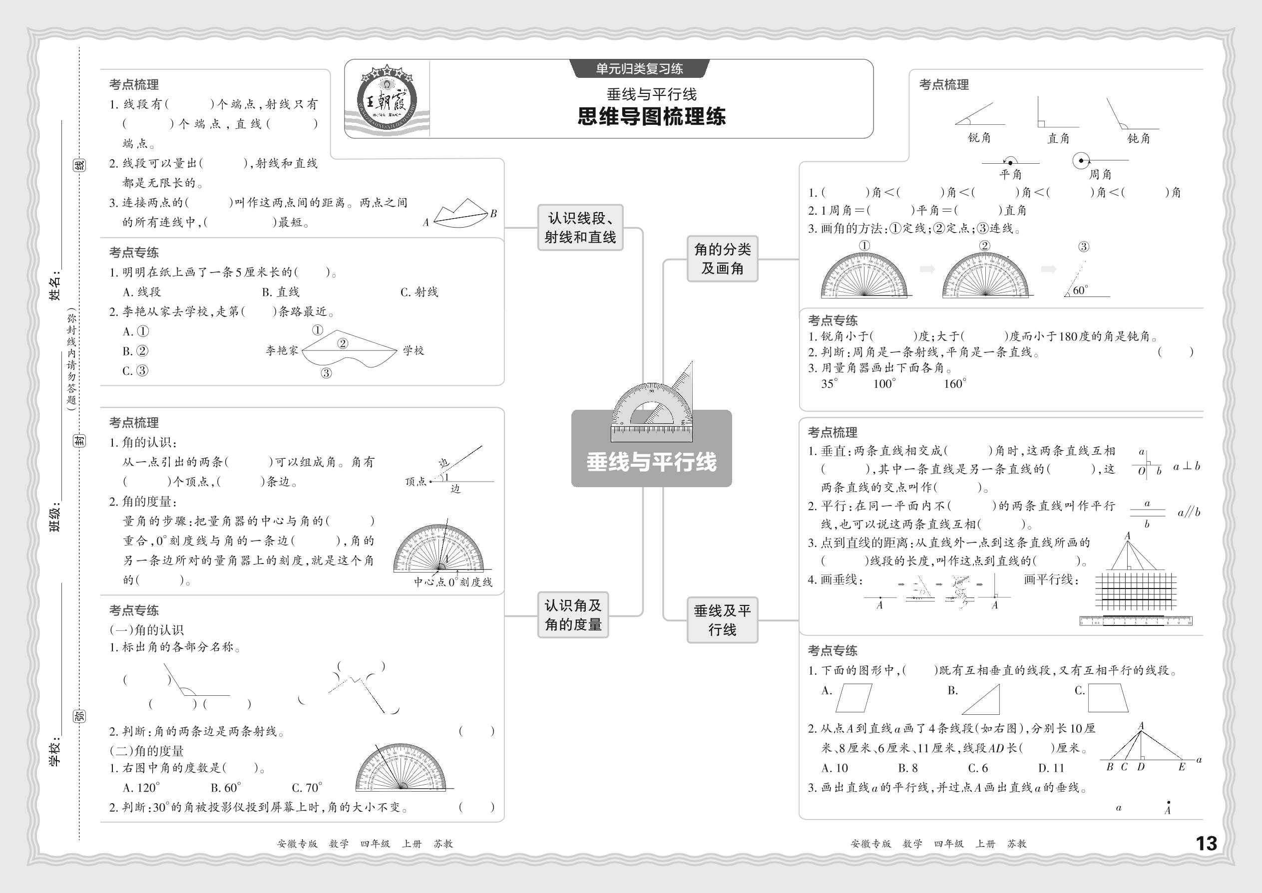 2023秋上册四年级数学苏教版 期末过课本·单元归类复习练——垂线与平行线【6】