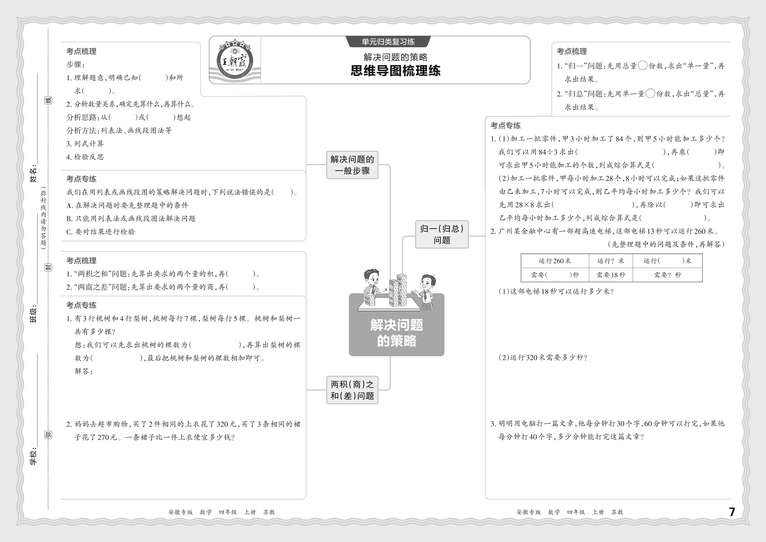 2023秋上册四年级数学苏教版 期末过课本·单元归类复习练——解决问题的策略【3】