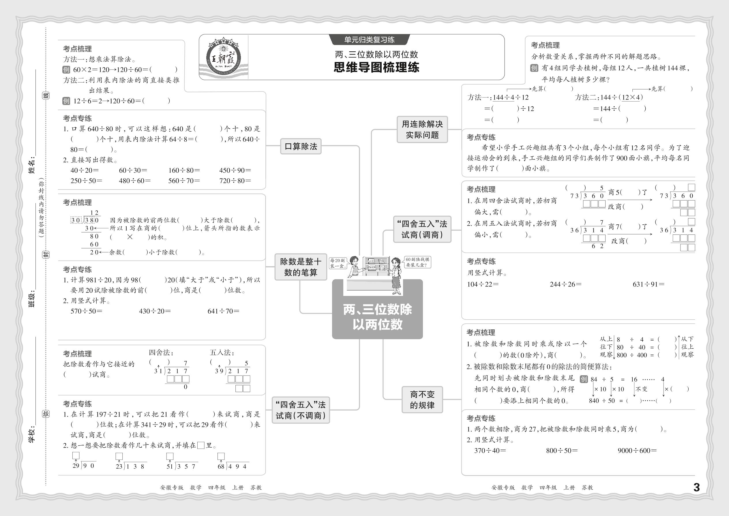 2023秋上册四年级数学苏教版 期末过课本·单元归类复习练——两、三位数除以两位数【1】
