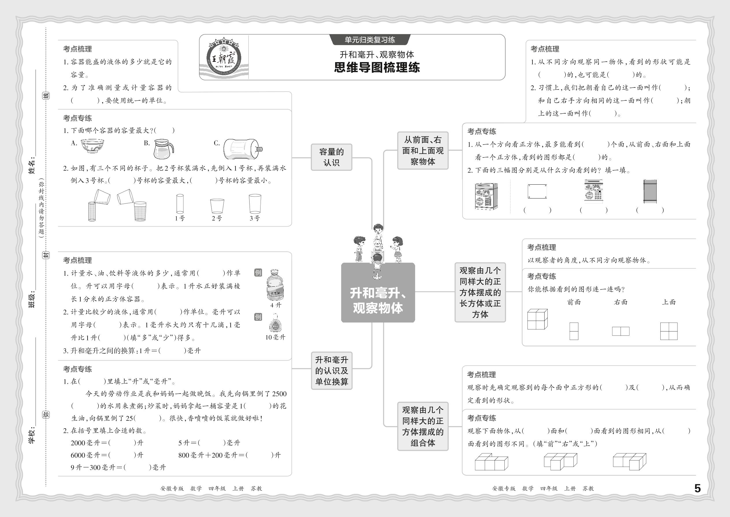 2023秋上册四年级数学苏教版 期末过课本·单元归类复习练——升和毫升、观察物体【2】