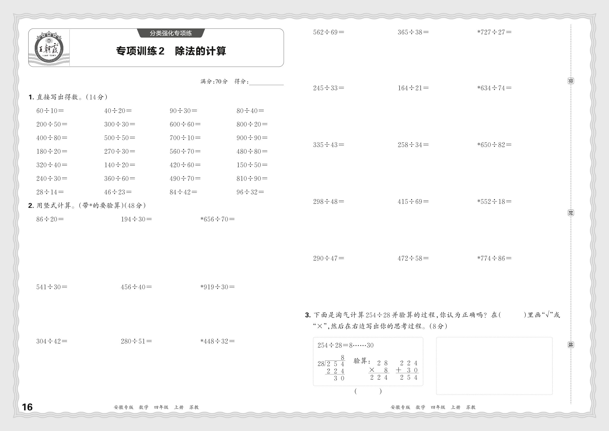 2023秋上册四年级数学苏教版 期末专项·除法的计算【2】