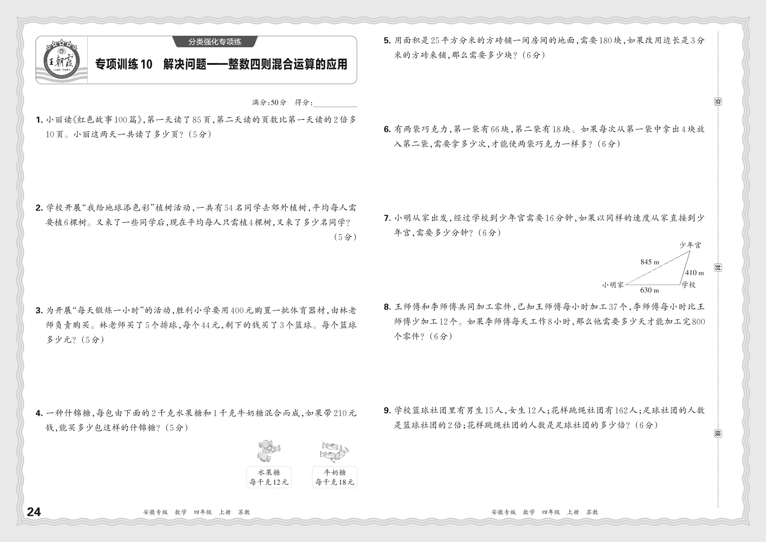 2023秋上册四年级数学苏教版 期末专项·解决问题——整数四则混合运算的应用【10】