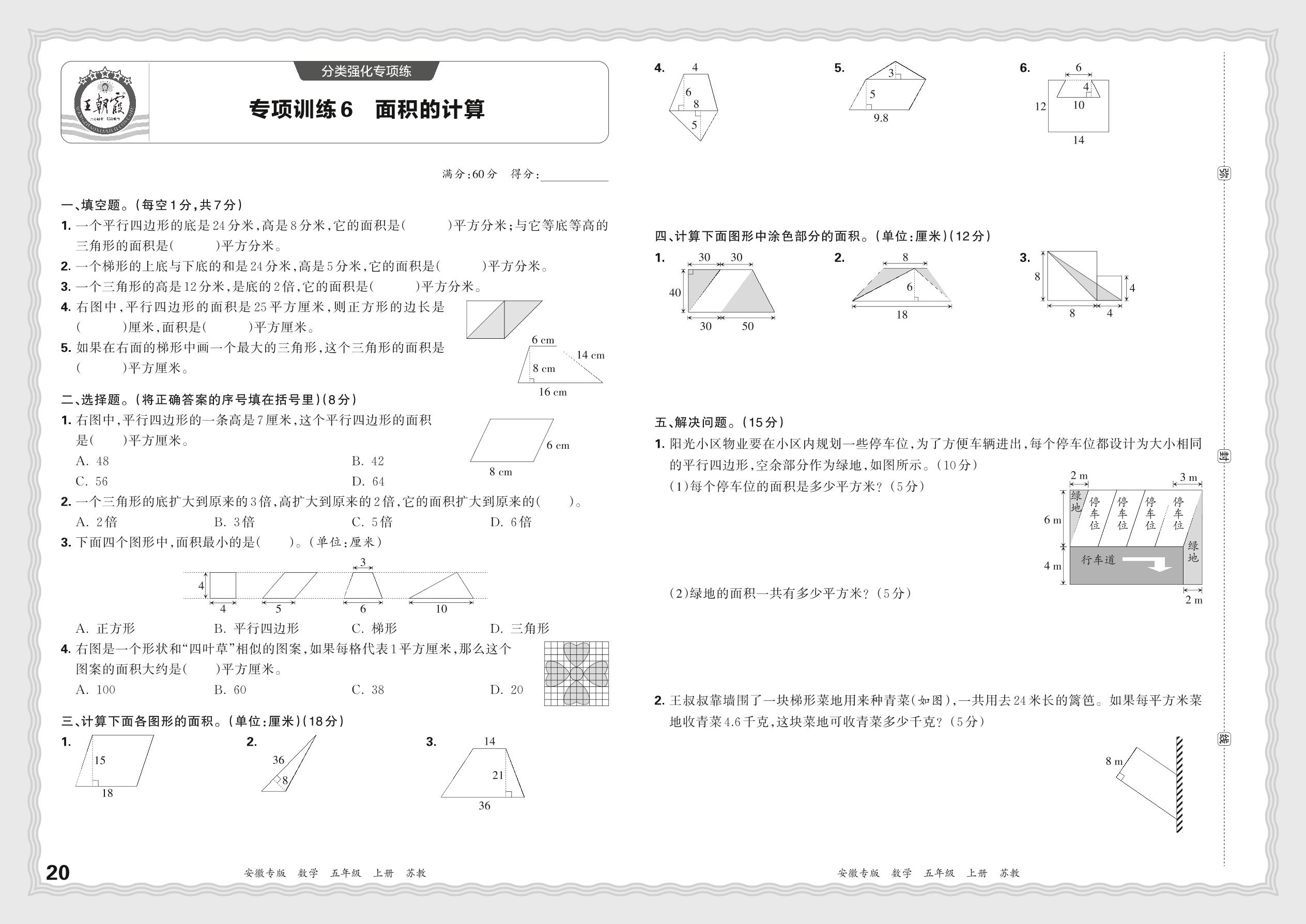 2023秋上册五年级数学苏教版 期末专项·面积的计算【6】