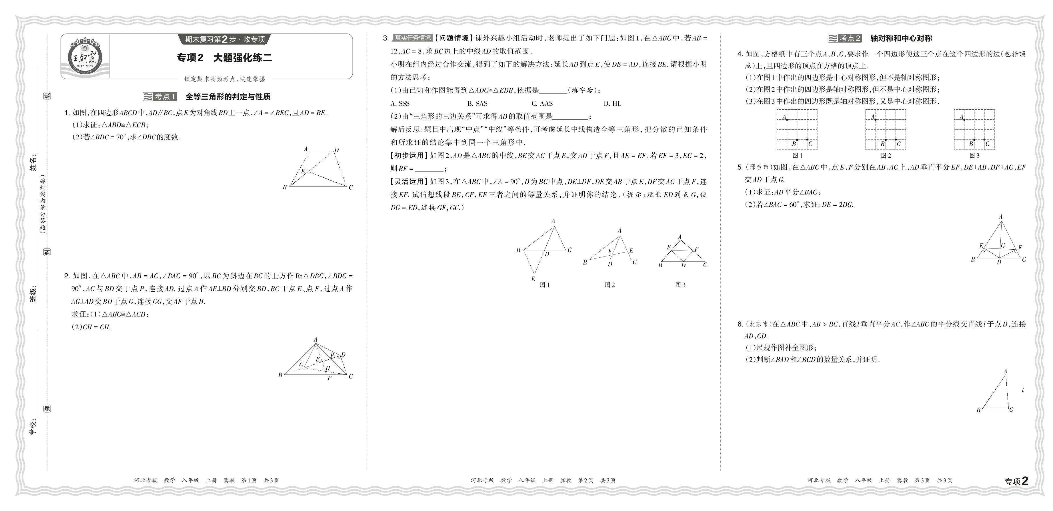 2023秋上册八年级数学冀教版 期末专项卷·大题强化练二