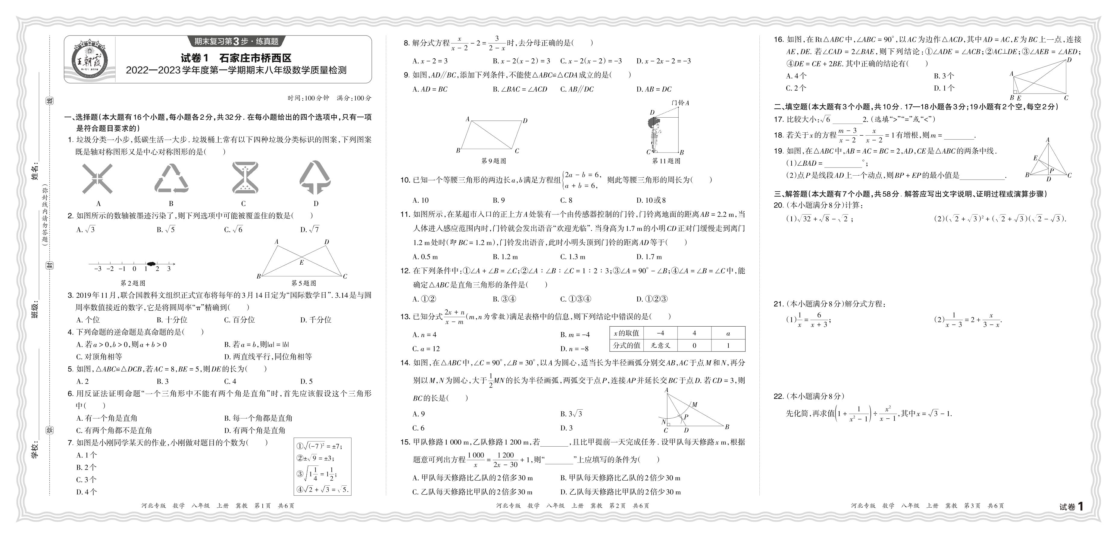 河北省石家庄市桥西区2022—2023学年度第一学期期未八年级数学质量检测(冀教版)【1】