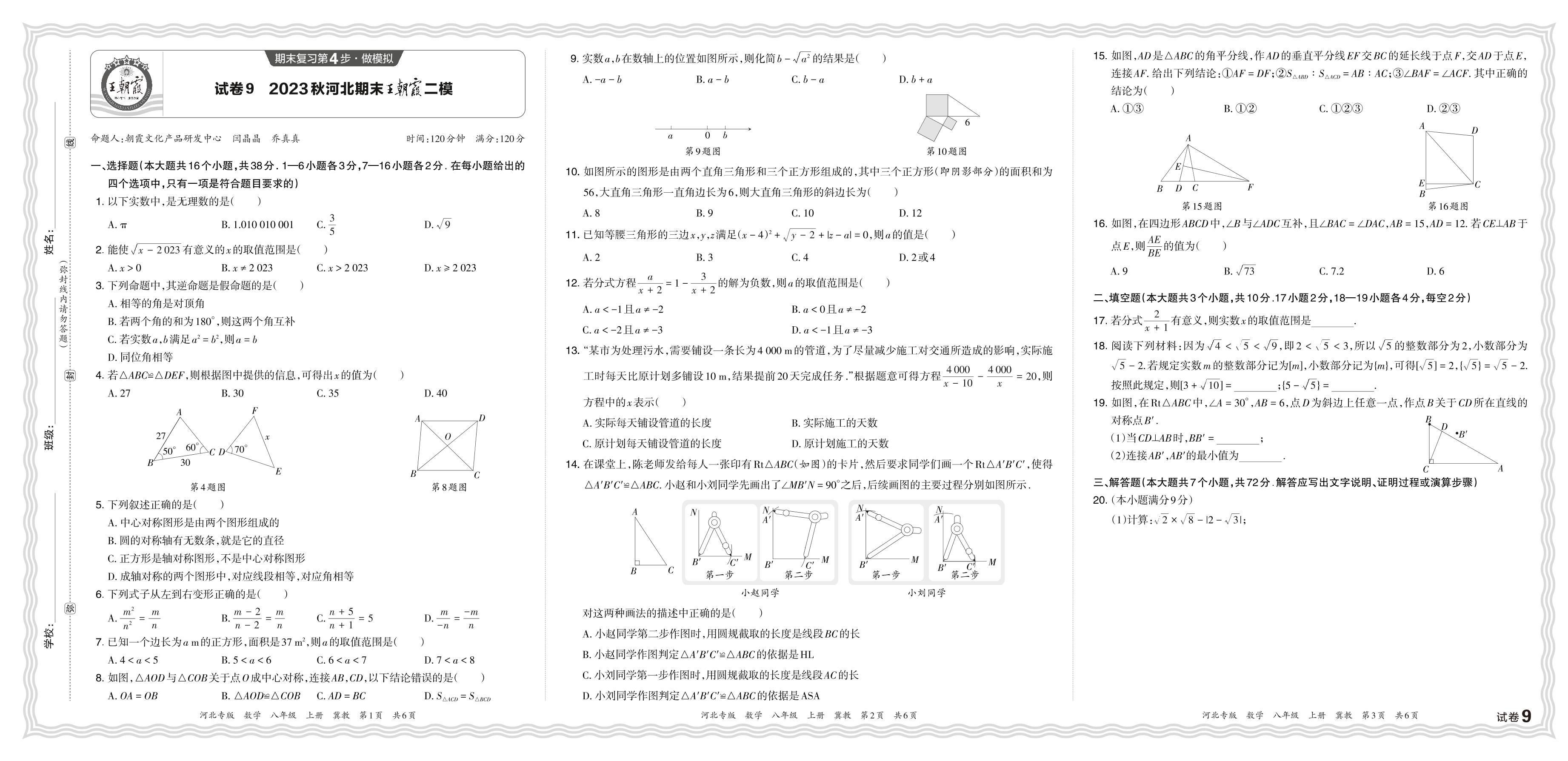 2023秋上册八年级数学冀教版 河北期末王朝霞二模