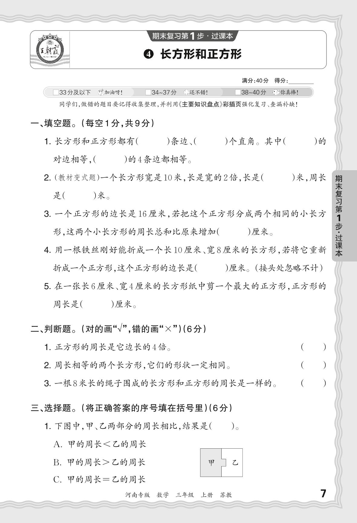 2023秋上册三年级数学苏教版 期末过课本QMA版·长方形和正方形【4】