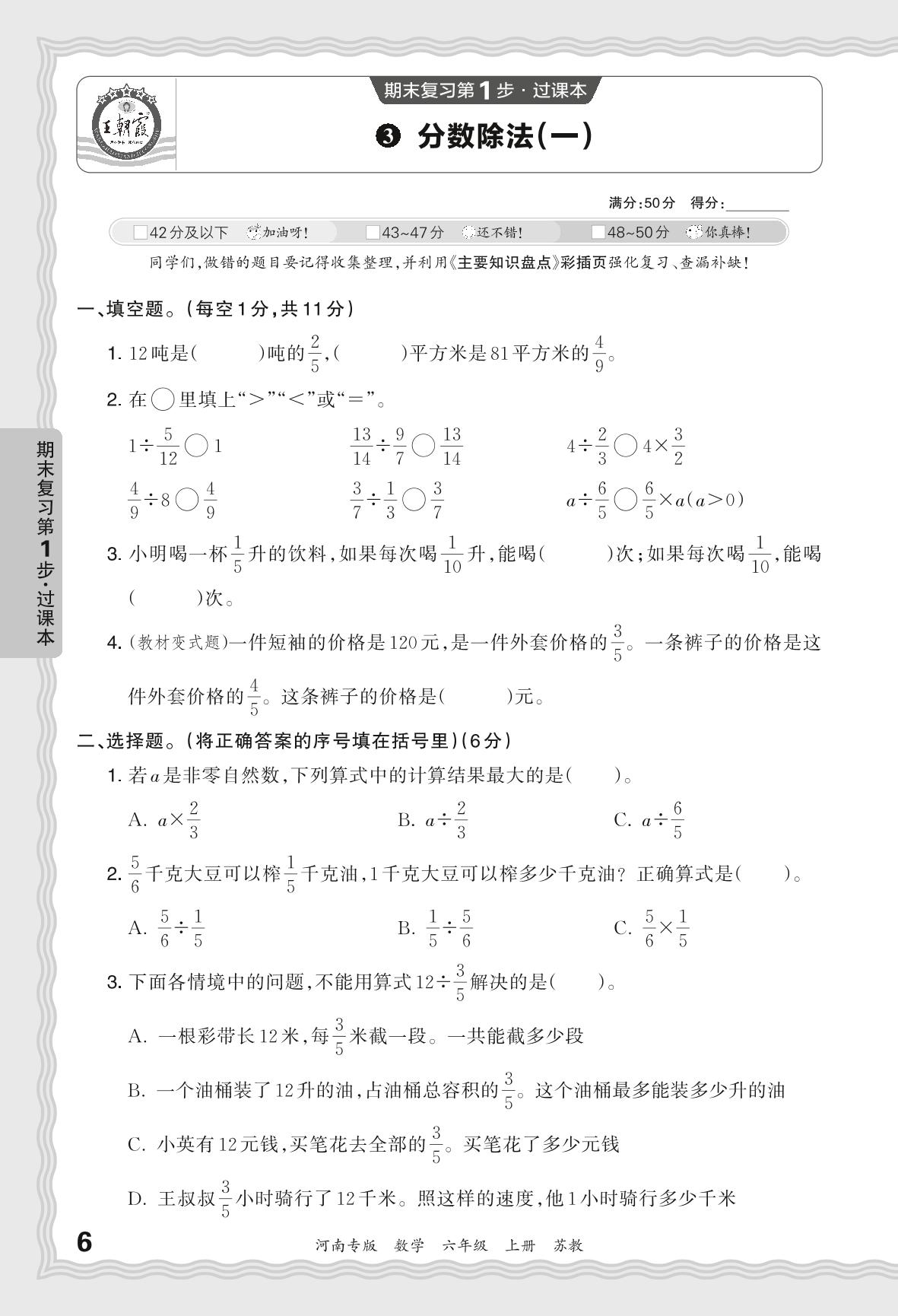 2023秋上册六年级数学苏教版 期末过课本QMA版·分数除法(一)【3】