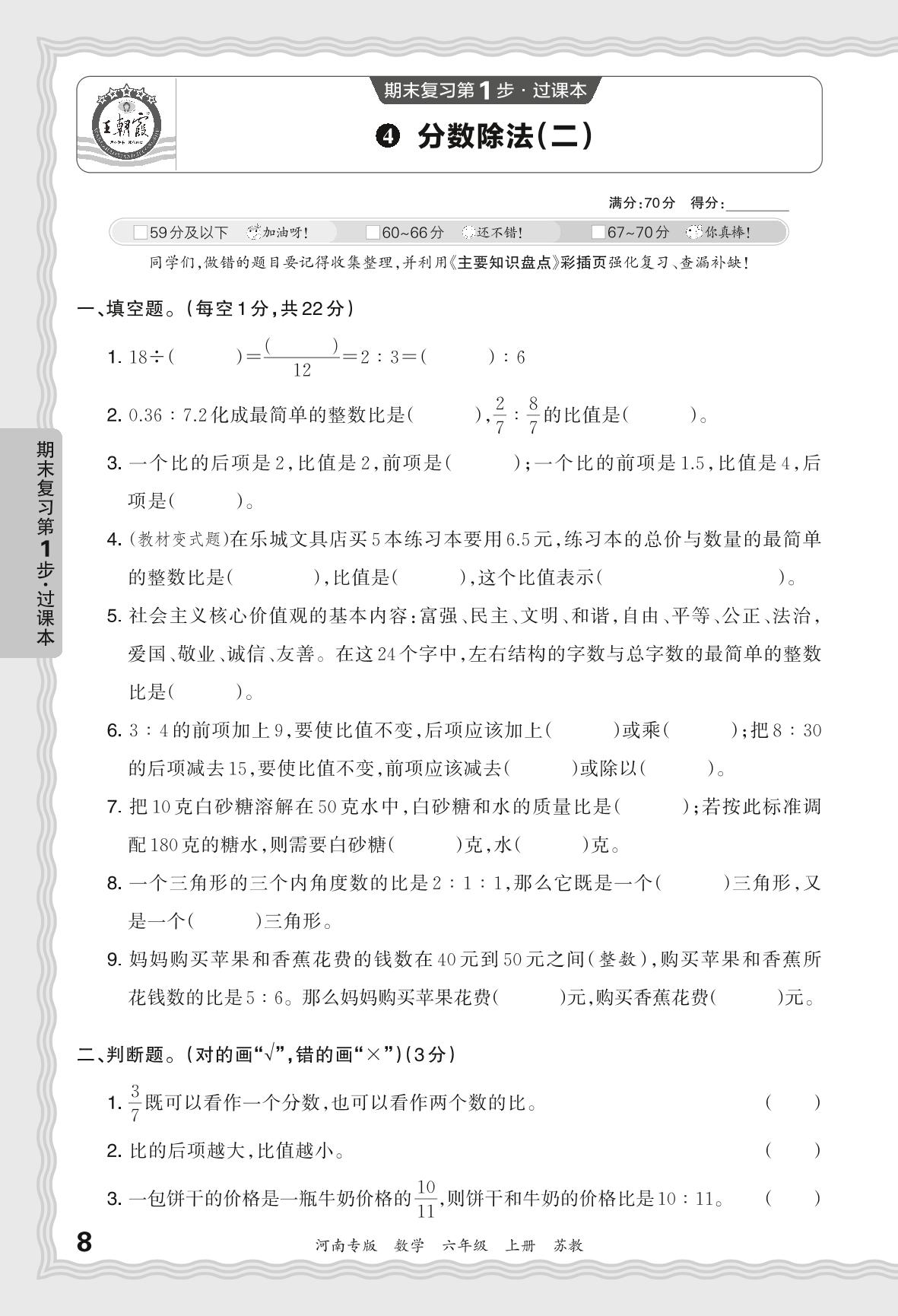 2023秋上册六年级数学苏教版 期末过课本QMA版·分数除法(二)【4】