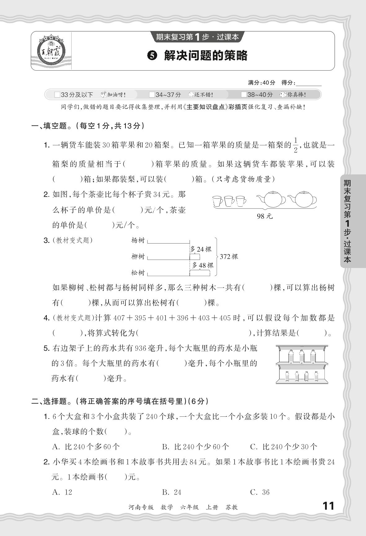 2023秋上册六年级数学苏教版 期末过课本QMA版·解决问题的策略【5】