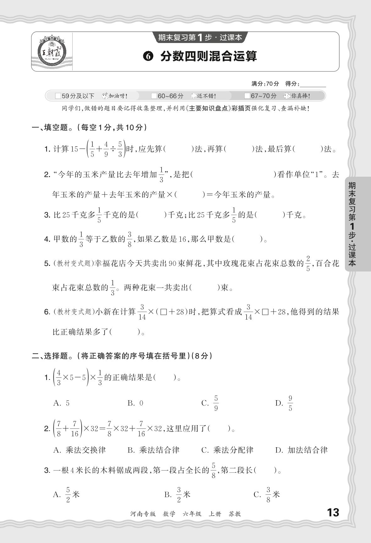 2023秋上册六年级数学苏教版 期末过课本QMA版·分数四则混合运算【6】