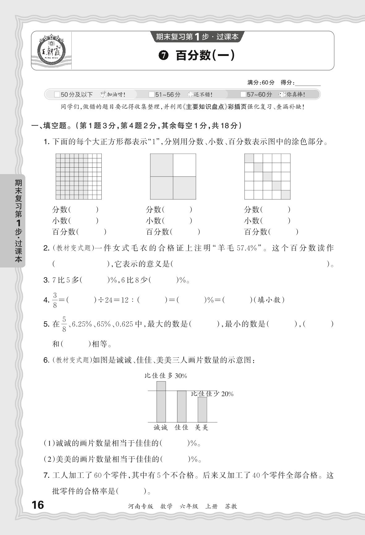 2023秋上册六年级数学苏教版 期末过课本QMA版·百分数(一)【7】
