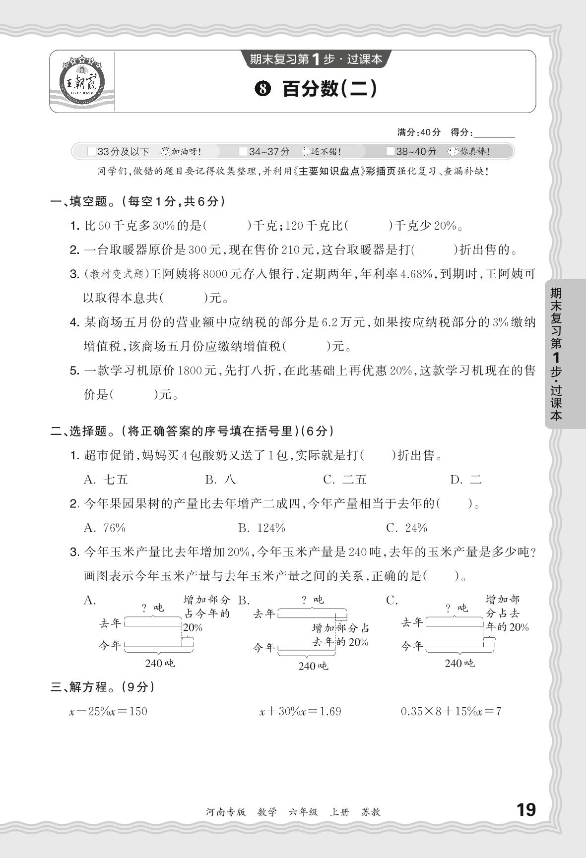 2023秋上册六年级数学苏教版 期末过课本QMA版·百分数(二)【8】