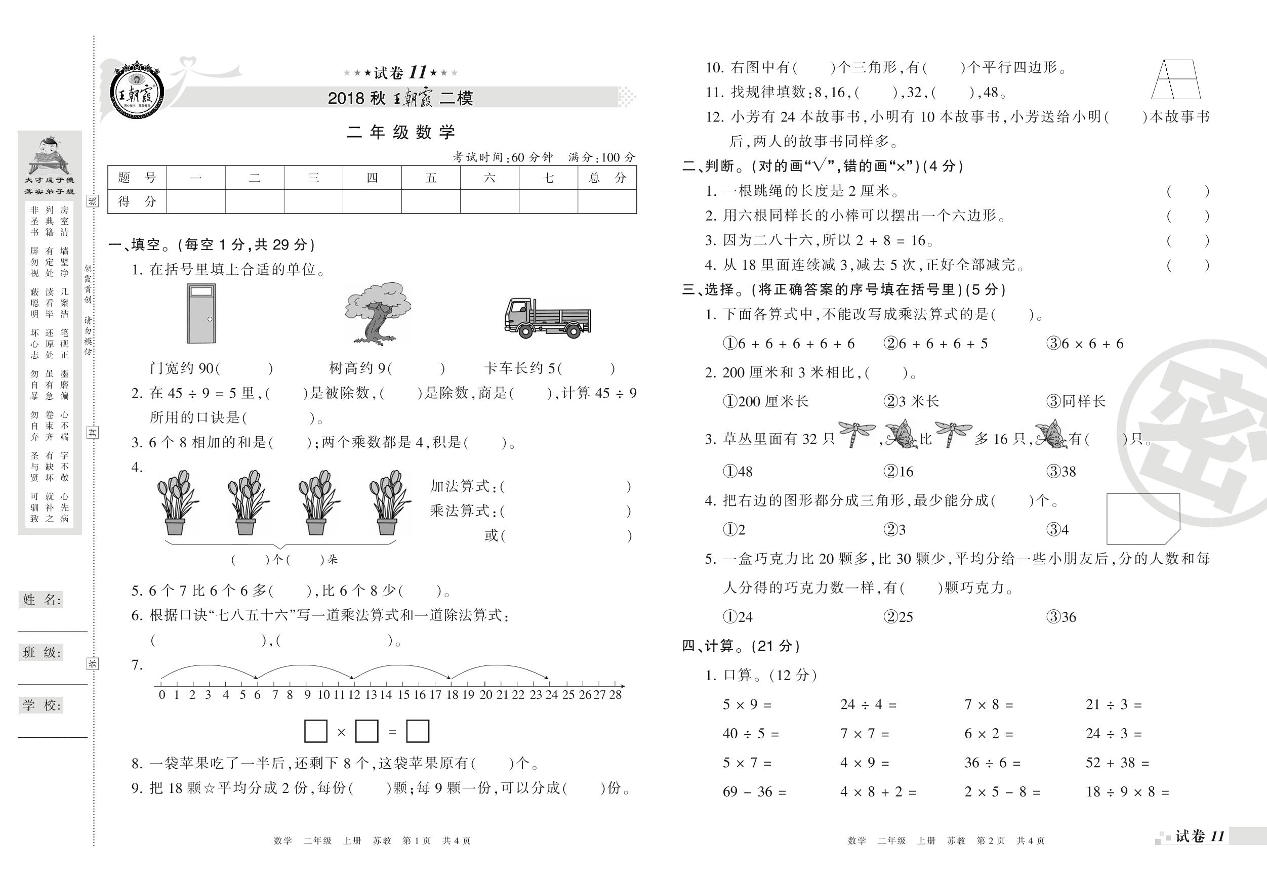 王朝霞期末模拟卷二年级上册数学(苏教版)_R210803103918【11】