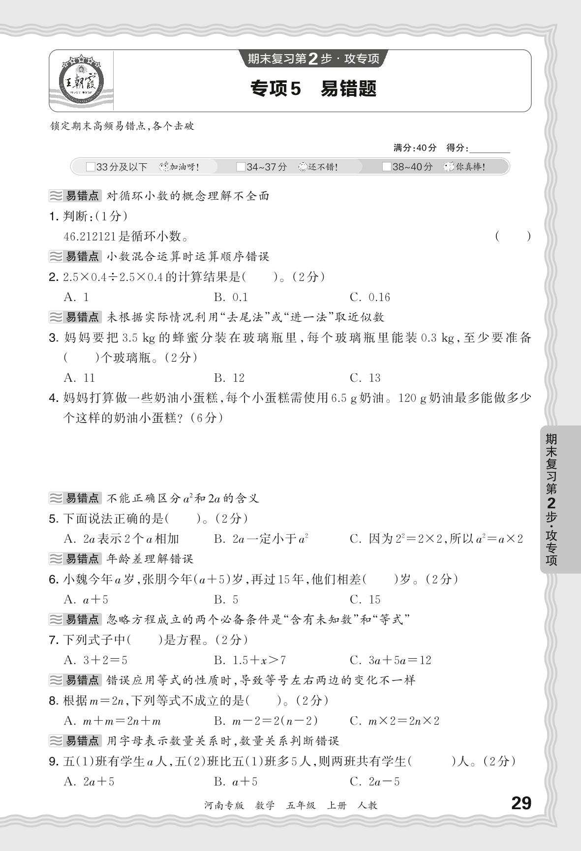 2023秋上册五年级数学人教版 期末专项卷·易错题【5】