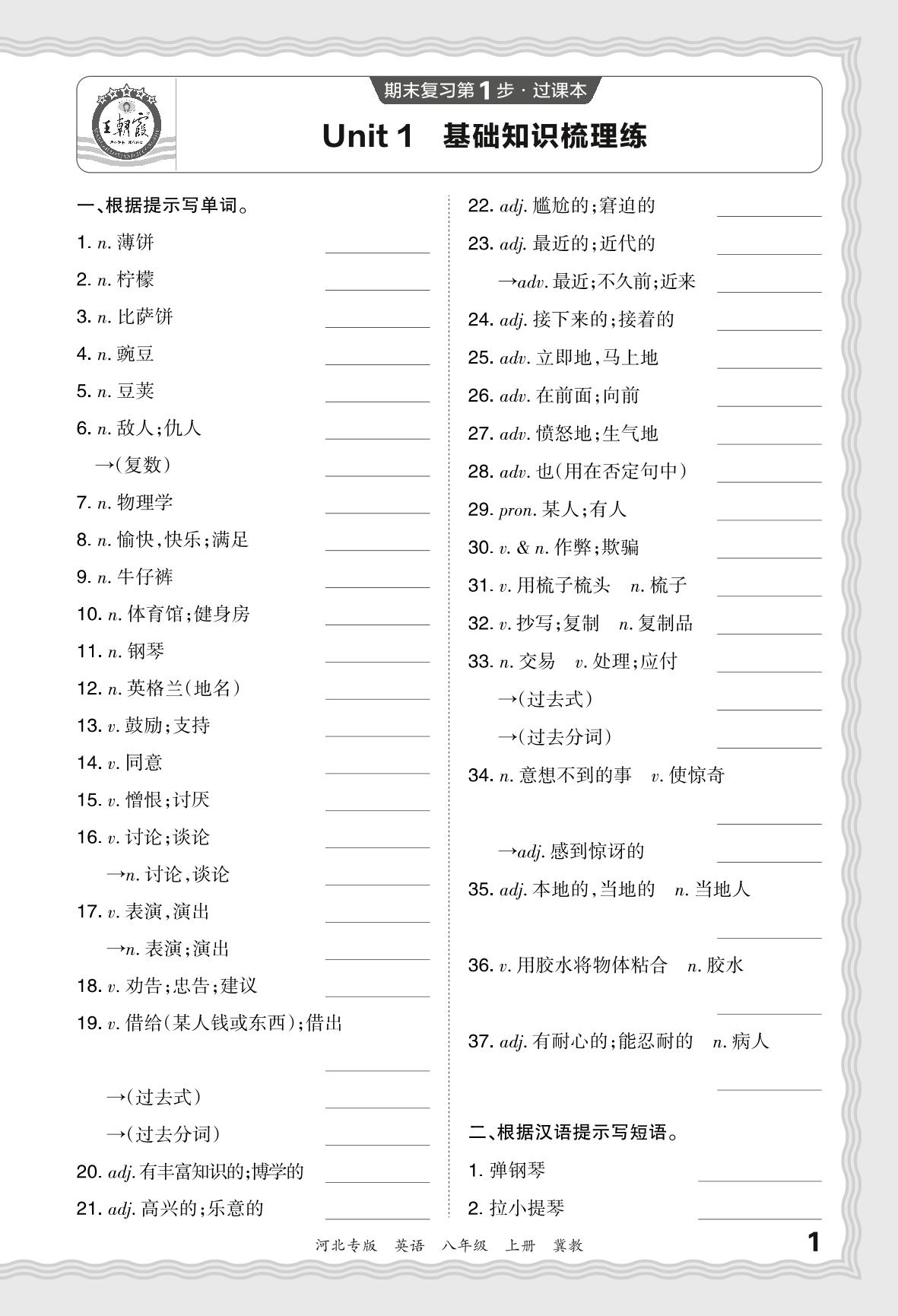 2023秋上册八年级英语冀教版 期末过课本·Unit 1 基础知识梳理练