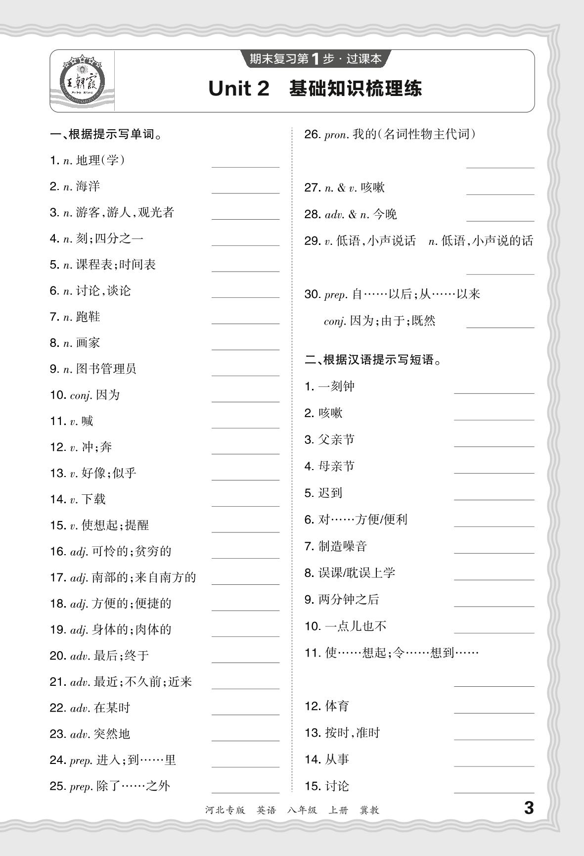 2023秋上册八年级英语冀教版 期末过课本·Unit 2 基础知识梳理练