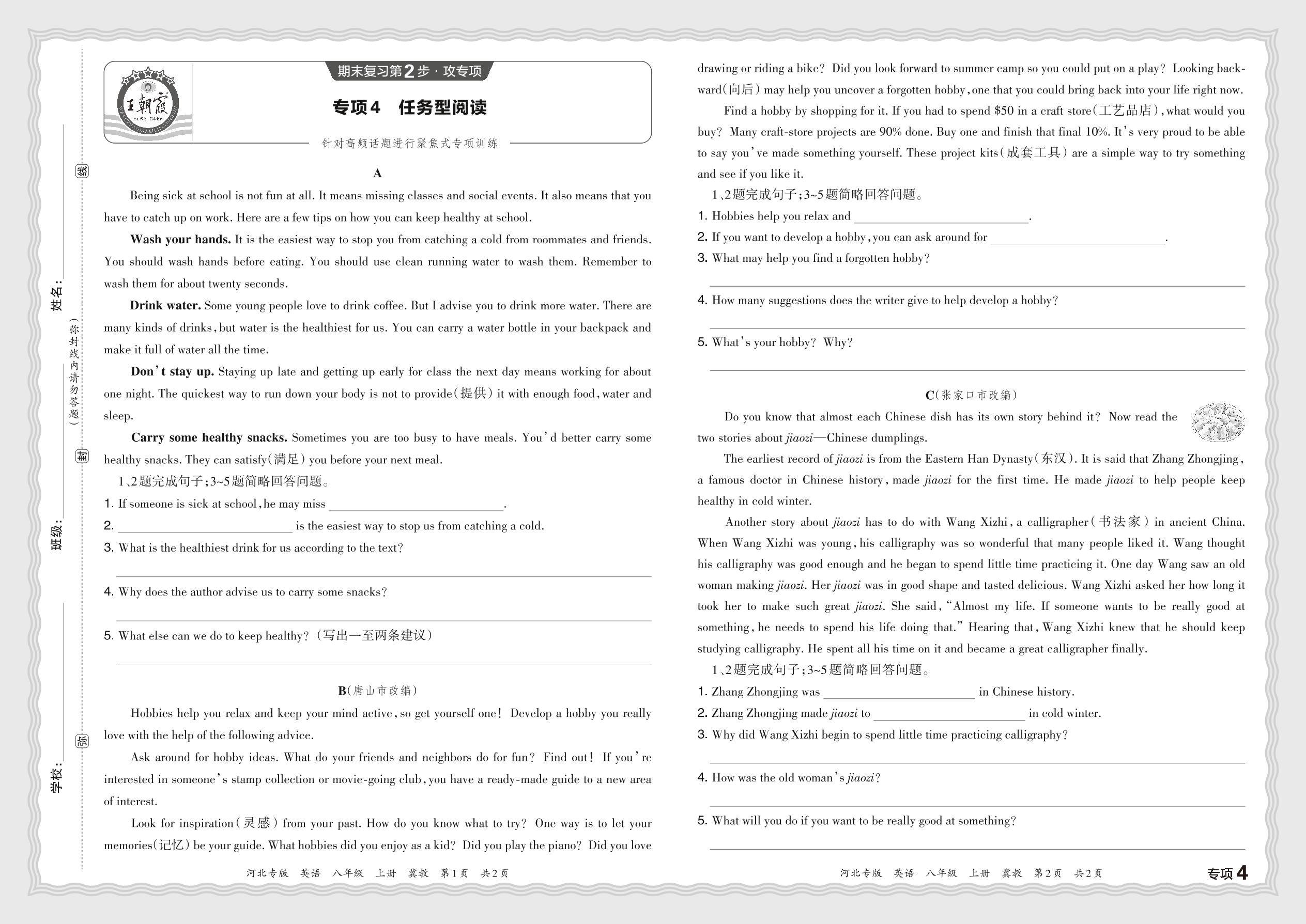2023秋上册八年级英语冀教版 期末专项卷·任务型阅读【4】