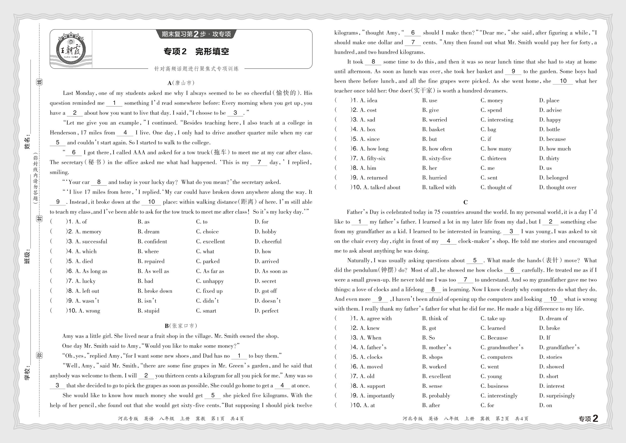 2023秋上册八年级英语冀教版 期末专项卷·完形填空【2】
