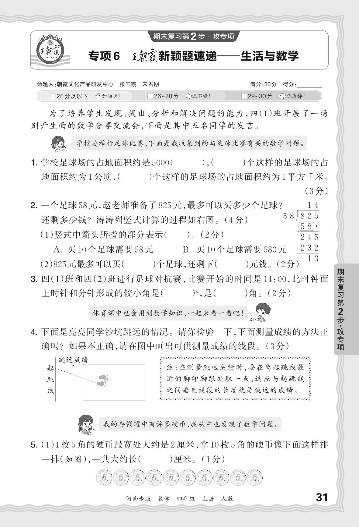 2023秋上册四年级数学人教版 期末专项卷·王朝霞新颖题速递——生活与数学【6】