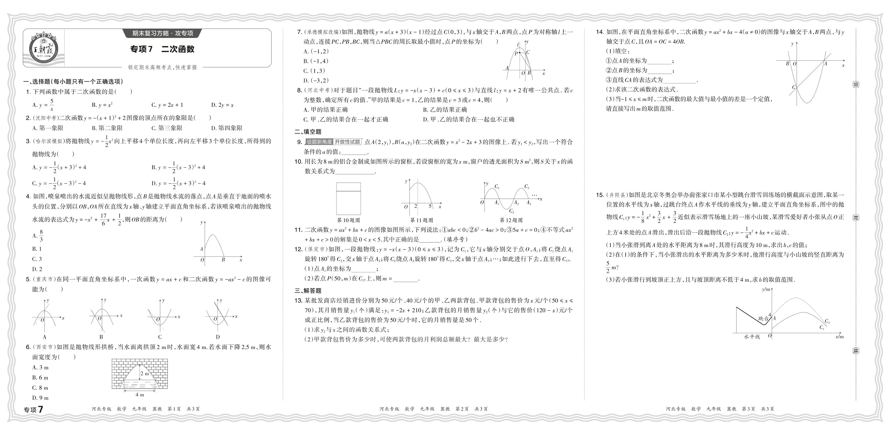2023秋上册九年级数学冀教版 期末专项卷·二次函数【7】