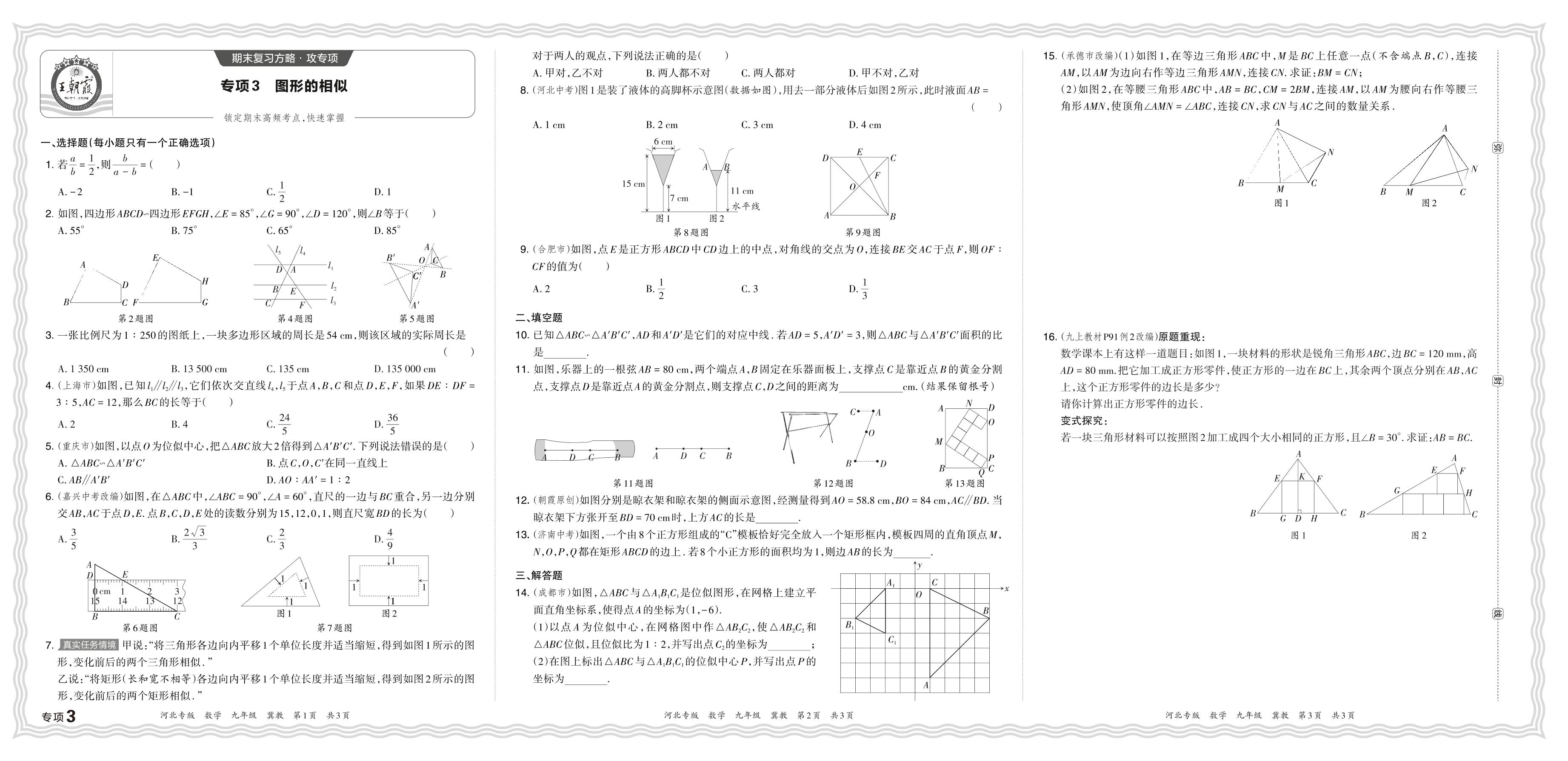 2023秋上册九年级数学冀教版 期末专项卷·图形的相似【3】