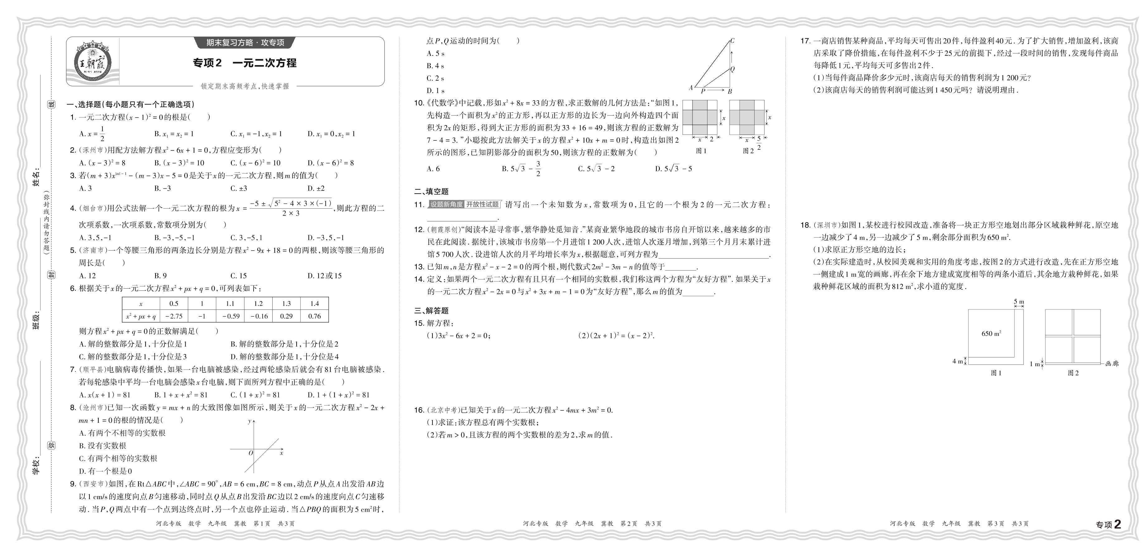 2023秋上册九年级数学冀教版 期末专项卷·一元二次方程【2】