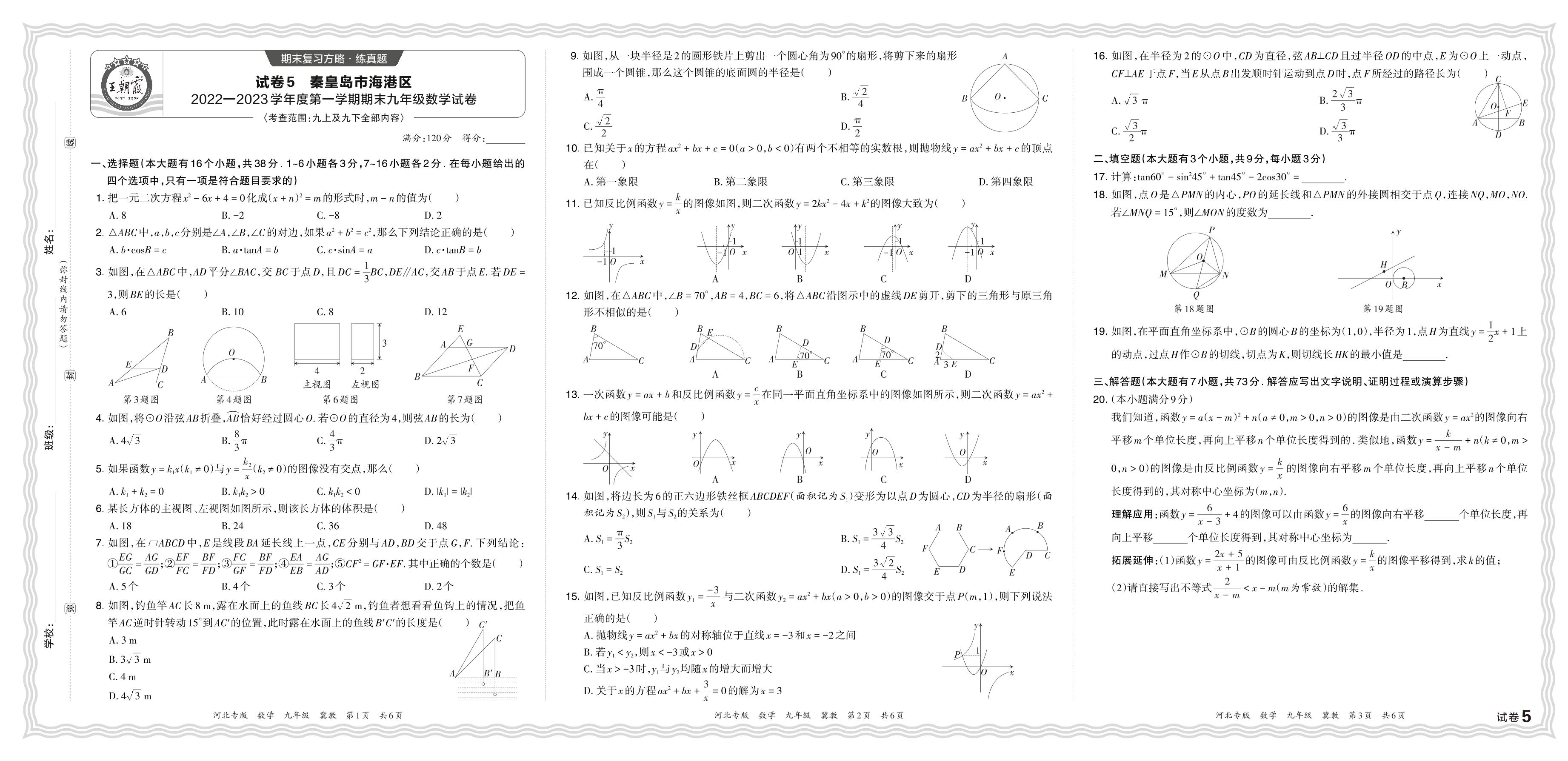 河北省秦皇岛市海港区2022—2023学年度第一学期期末九年级数学试卷(冀教版)【5】
