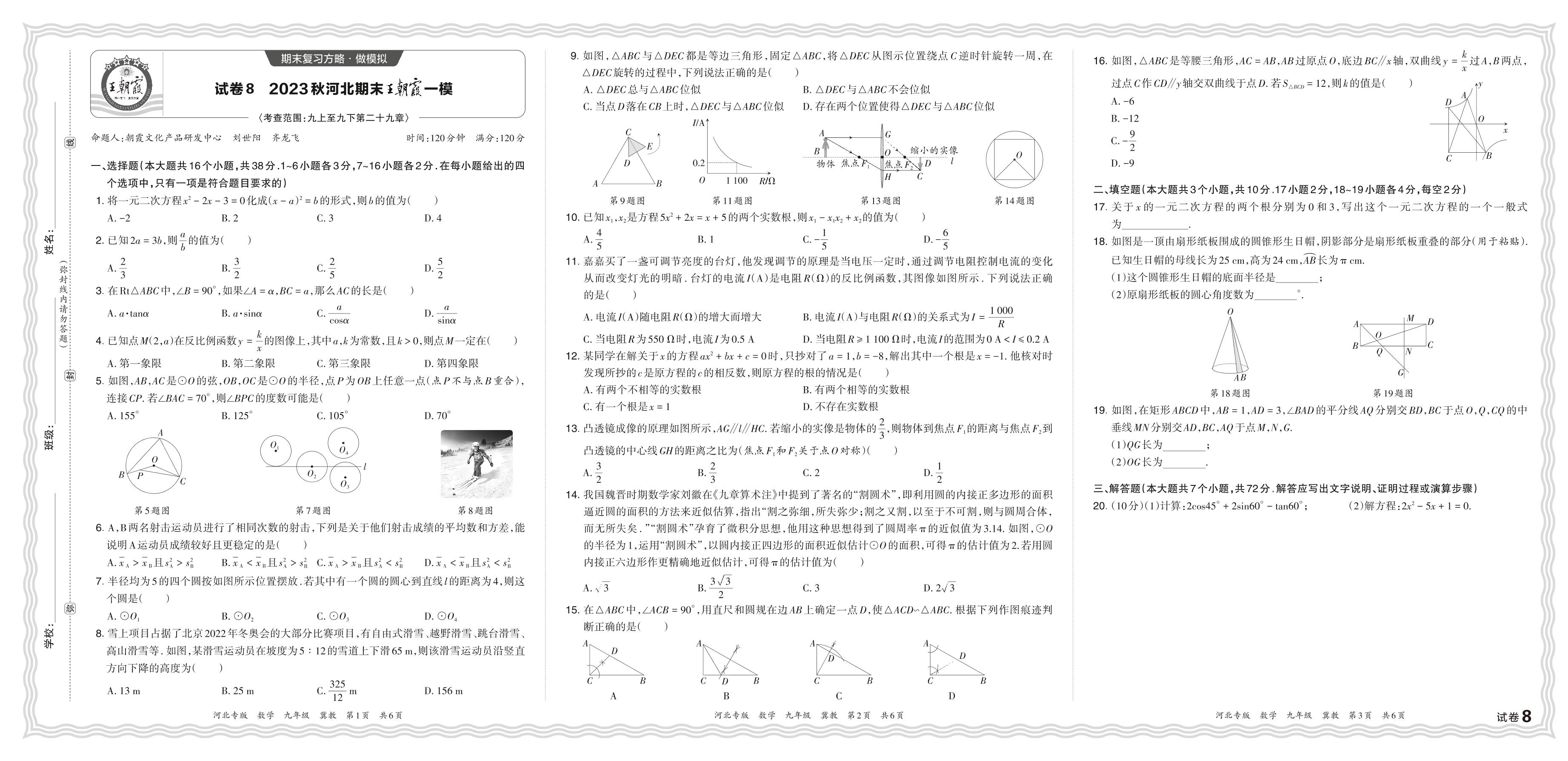 2023秋上册九年级数学冀教版 河北期末王朝霞一模