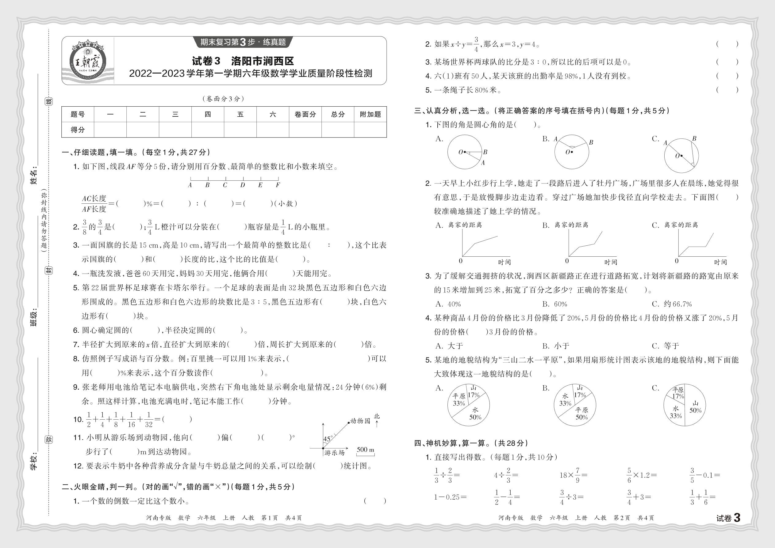 河南省洛阳市涧西区2022—2023学年第一学期六年级数学学业质量阶段性检测(人教版)【3】