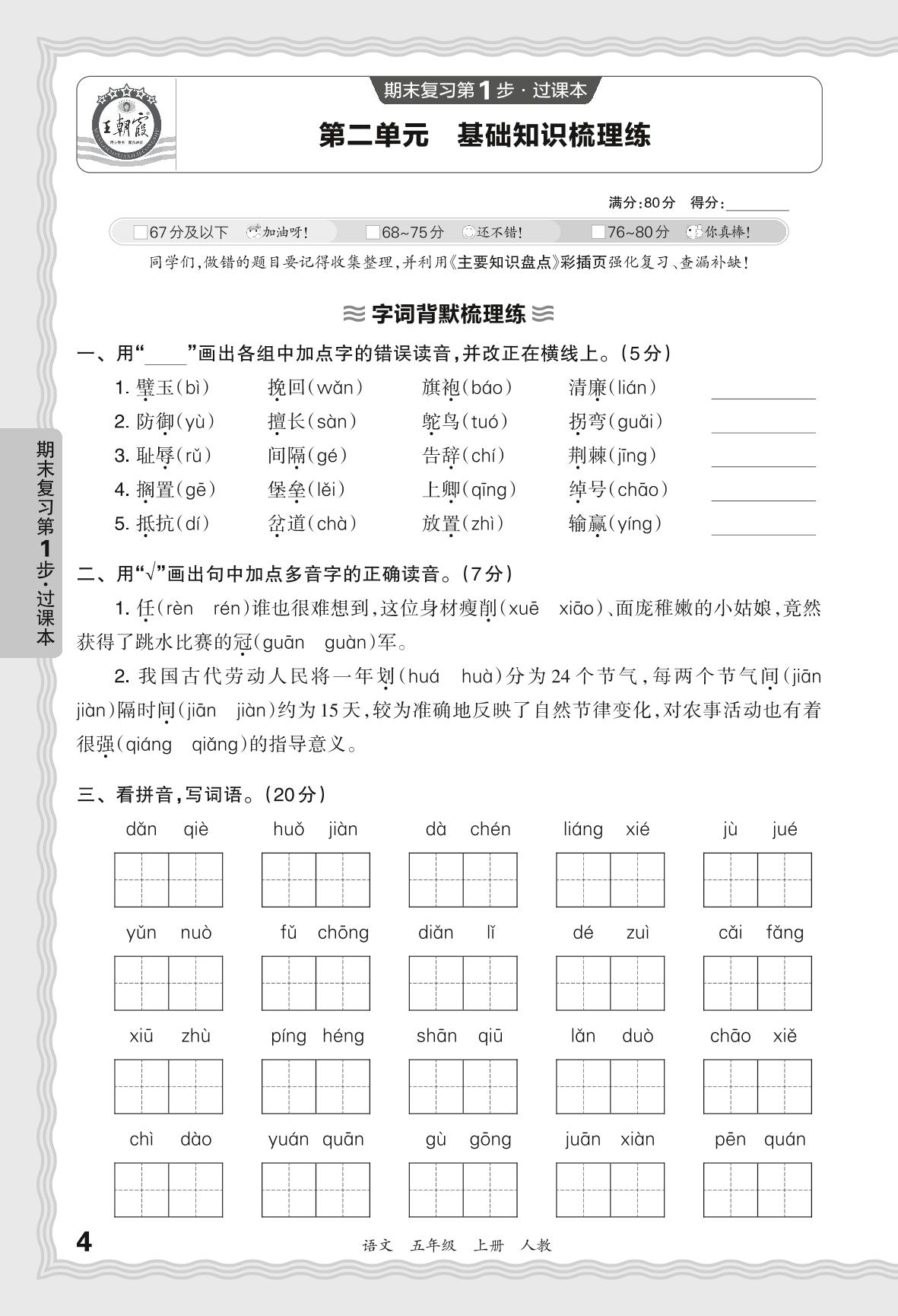 2023秋上册五年级语文人教版 期末过课本QMA版·第二单元 基础知识梳理练
