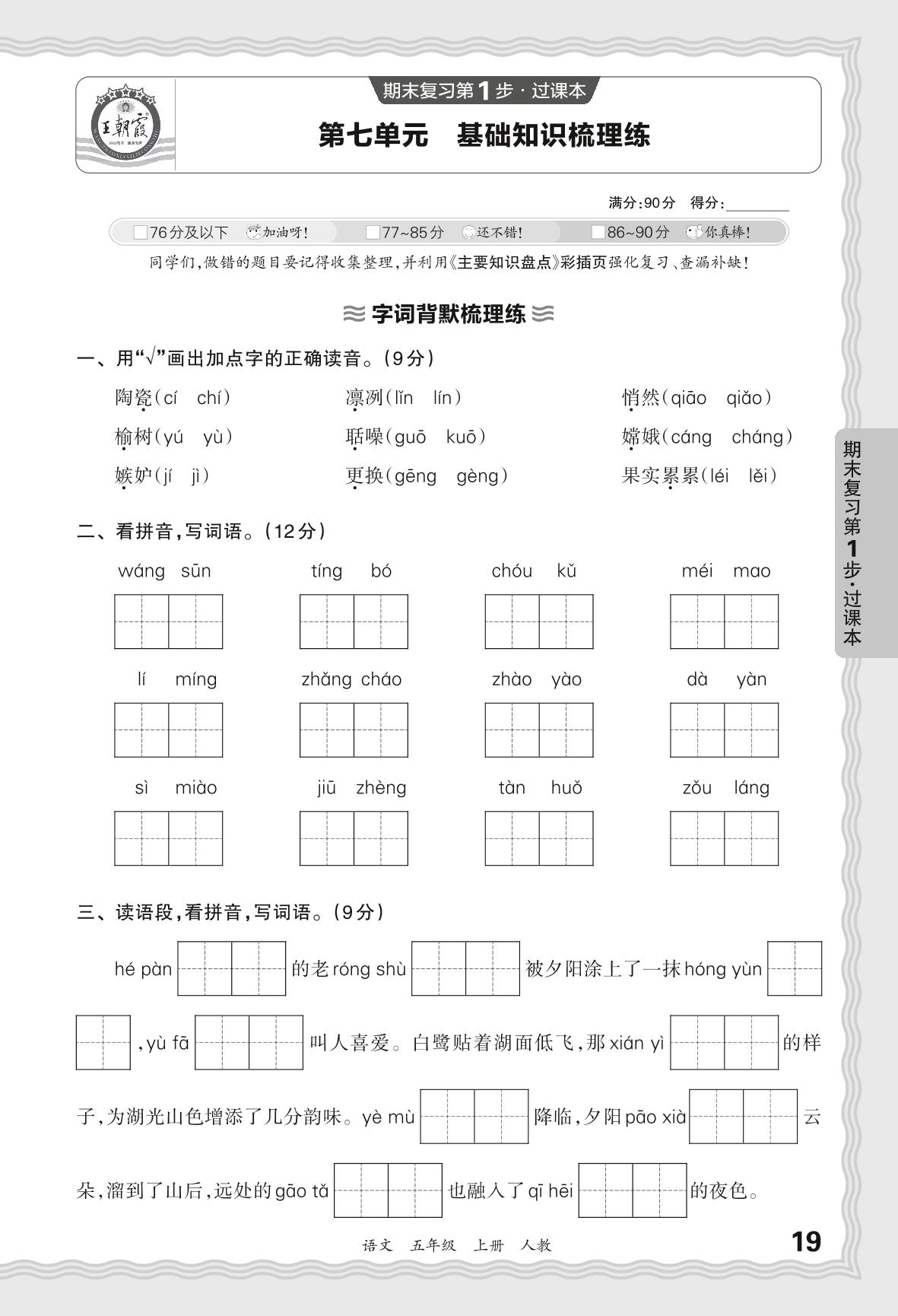 2023秋上册五年级语文人教版 期末过课本QMA版·第七单元 基础知识梳理练