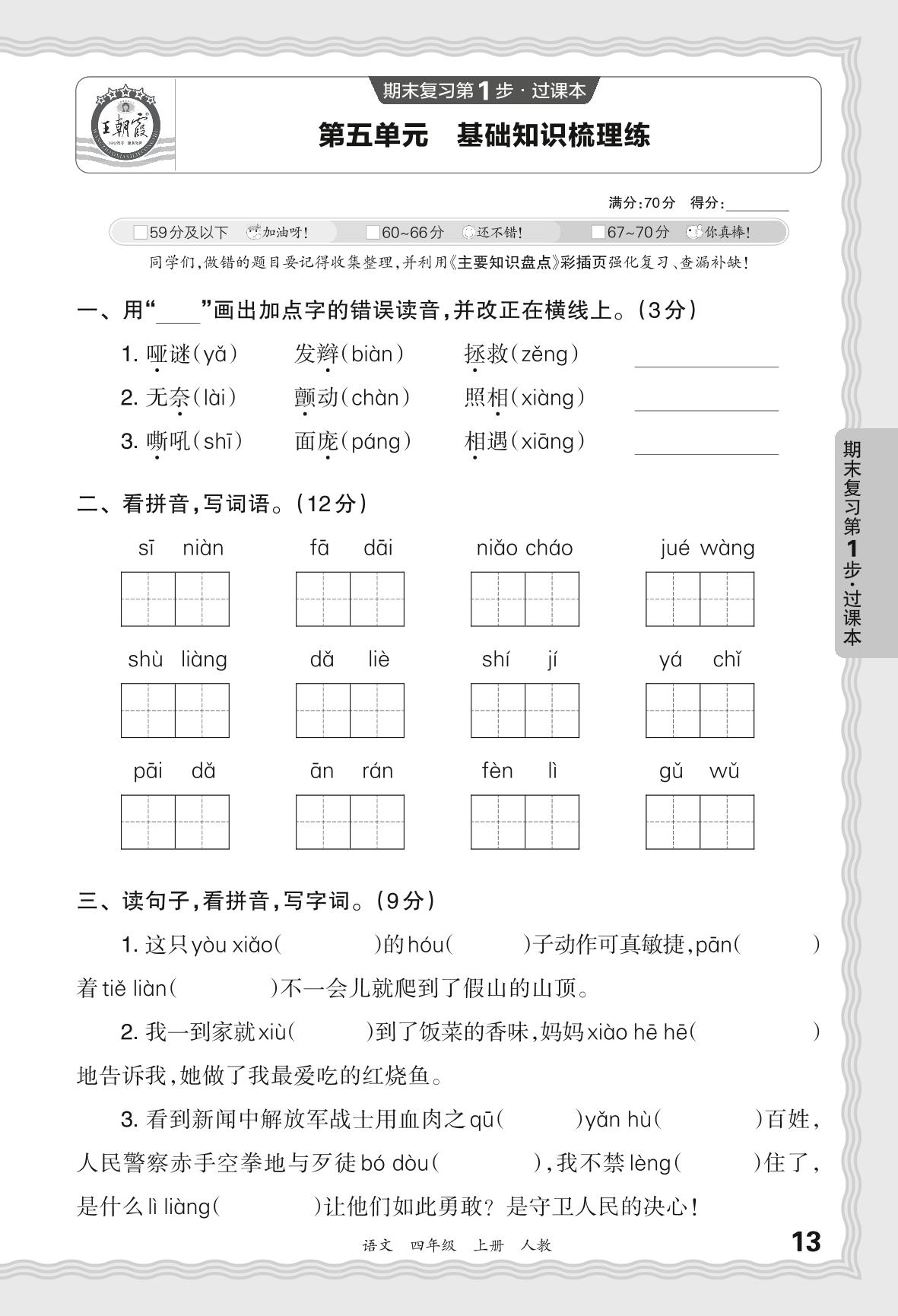 2023秋上册四年级语文人教版 期末过课本QMA版·第五单元 基础知识梳理练