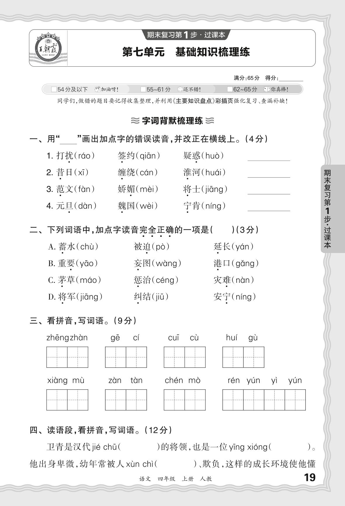 2023秋上册四年级语文人教版 期末过课本QMA版·第七单元 基础知识梳理练