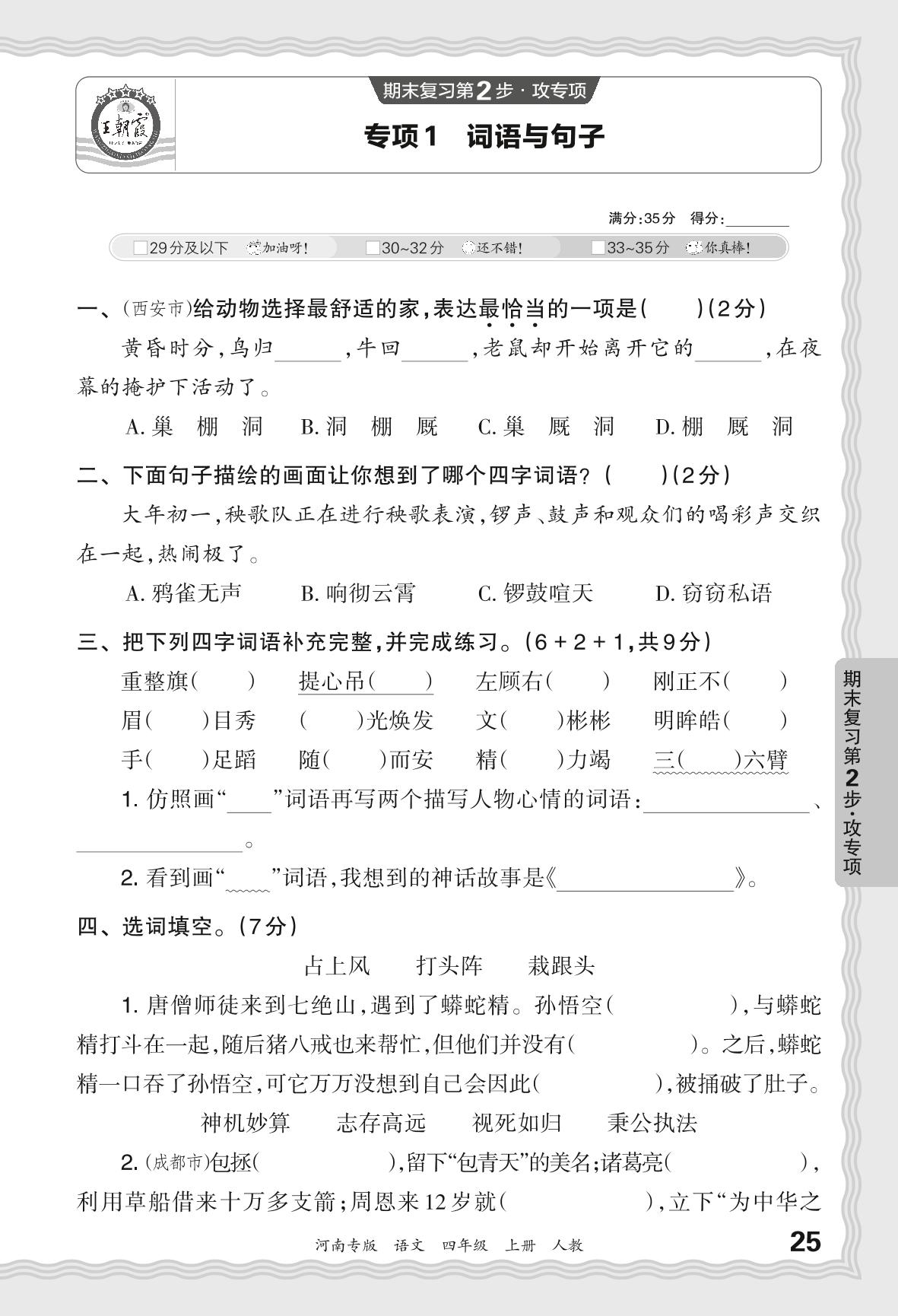 2023秋上册四年级语文人教版 期末专项卷·词语与句子【1】